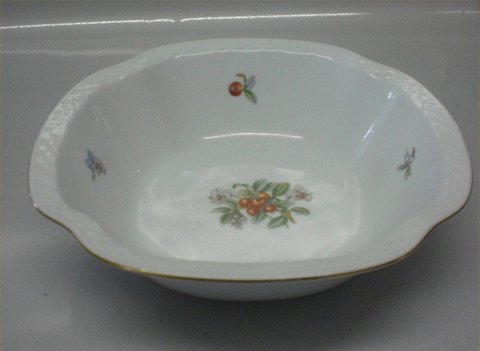 043 Stor kartoffelskål 25,5 x 8 cm ottekantet (313) Bing & Grøndahl Ægir spise- og kaffestel på samme skællede grundform som mågestellet form 356: Hvidt porcelæn, tyttebær og vild stedmoderblomst (dekoration som Ymer og Rio)