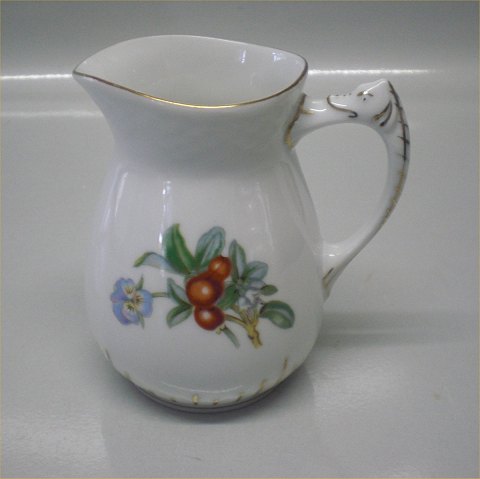 189 Flødekande 10,5 cm 2,25 dl (303) Bing & Grøndahl Ægir spise- og kaffestel på den skællede grundform form 356: Hvidt porcelæn, tyttebær og vild stedmoderblomst (dekoration som Ymer og Rio)