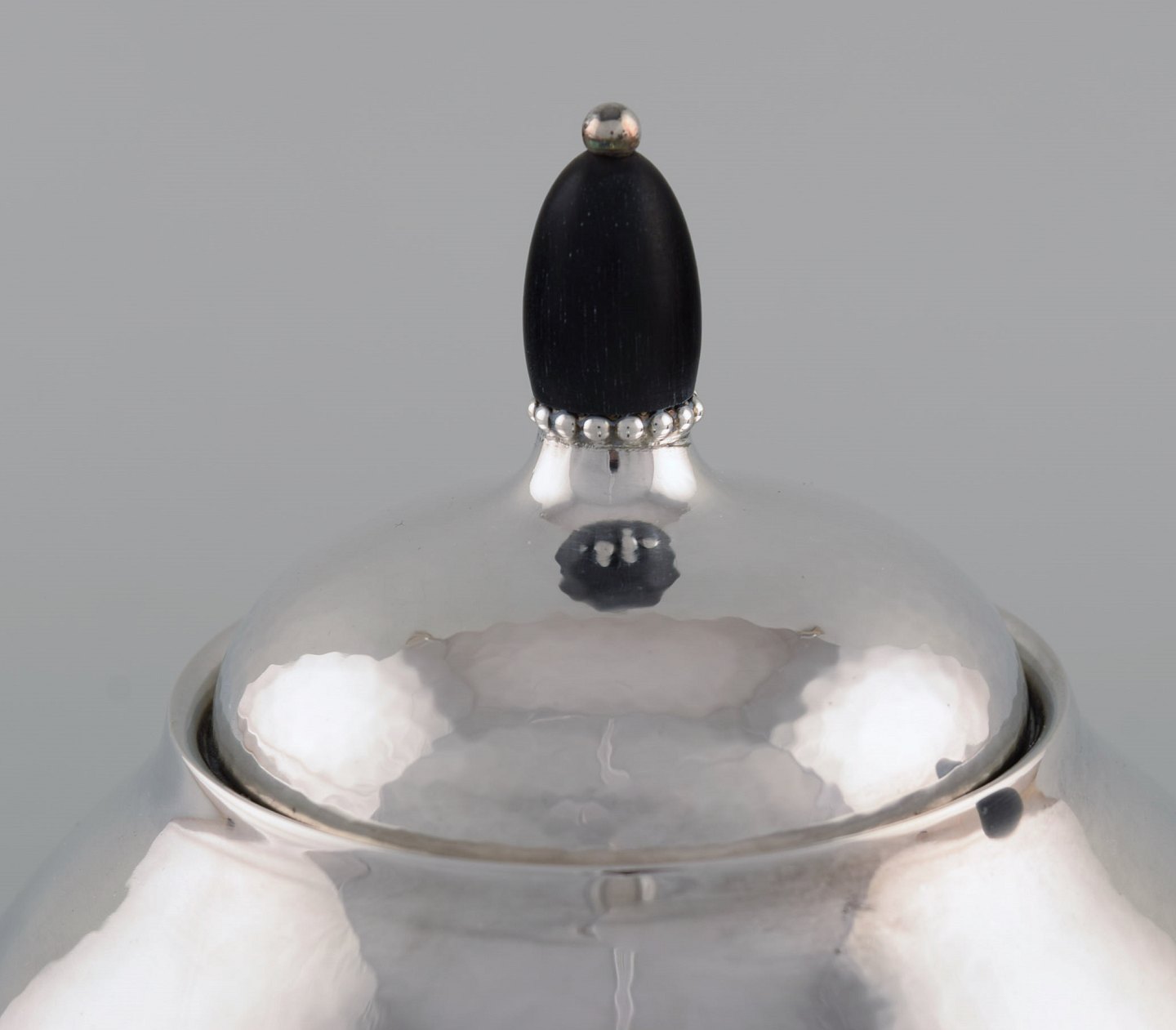 Georg Jensen art nouveau tekande og mælkekande i sterlingsølv med hank og knop i ibenholt. Modelnummer 80A/80B. Designet i 1915.