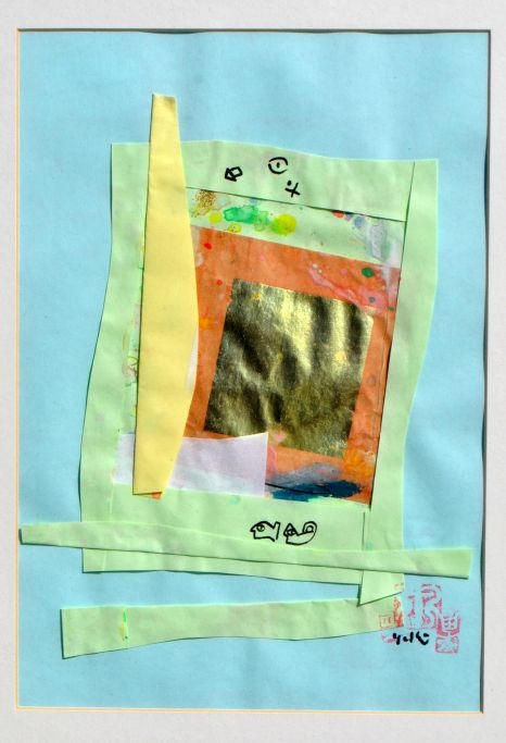 Nakajima, Yoshio (1940 -) Sverige/Japan: Summer is here. Collage. Signeret 2015. 40 x 30 cm.  Indrammet