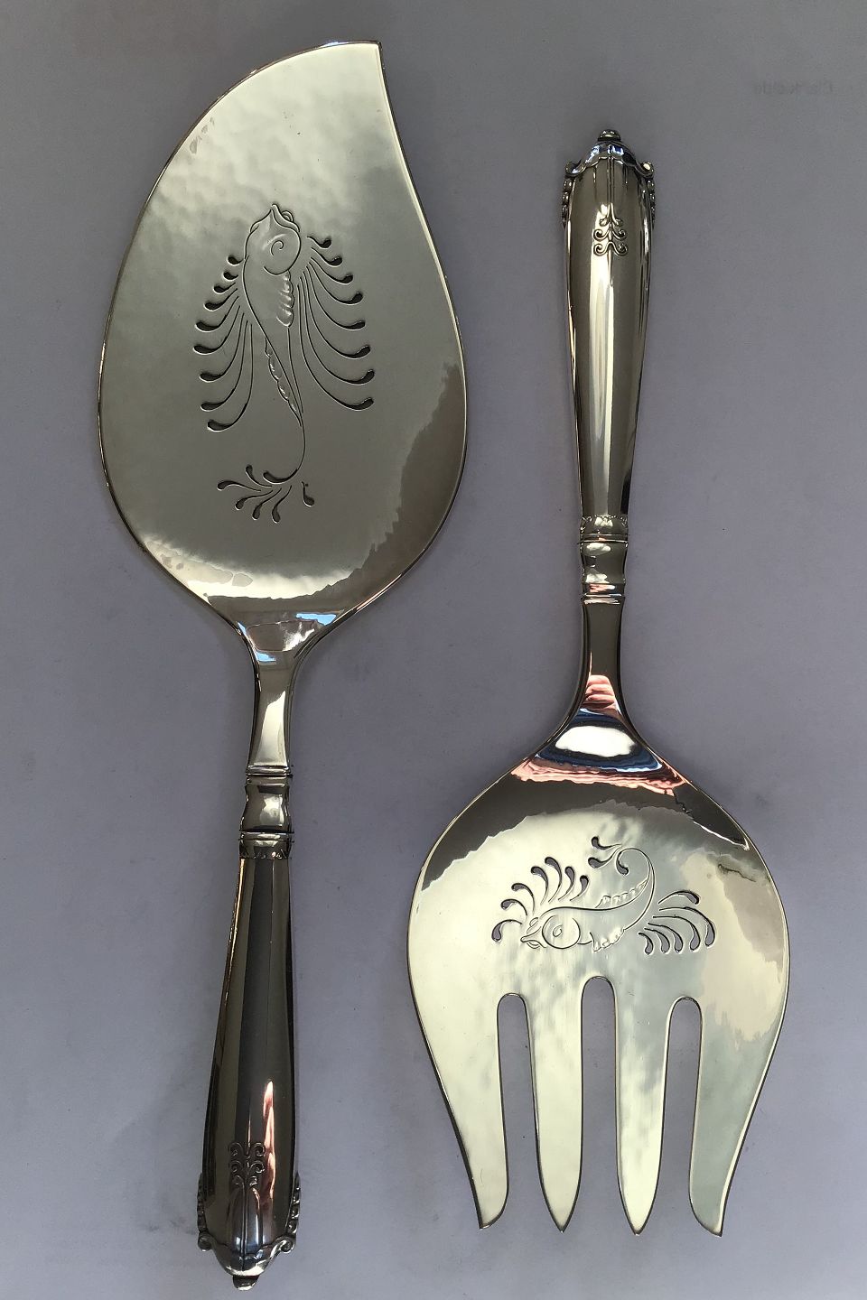 Georg Jensen Sterling Sølv Akkeleje Fiskeserveringssæt