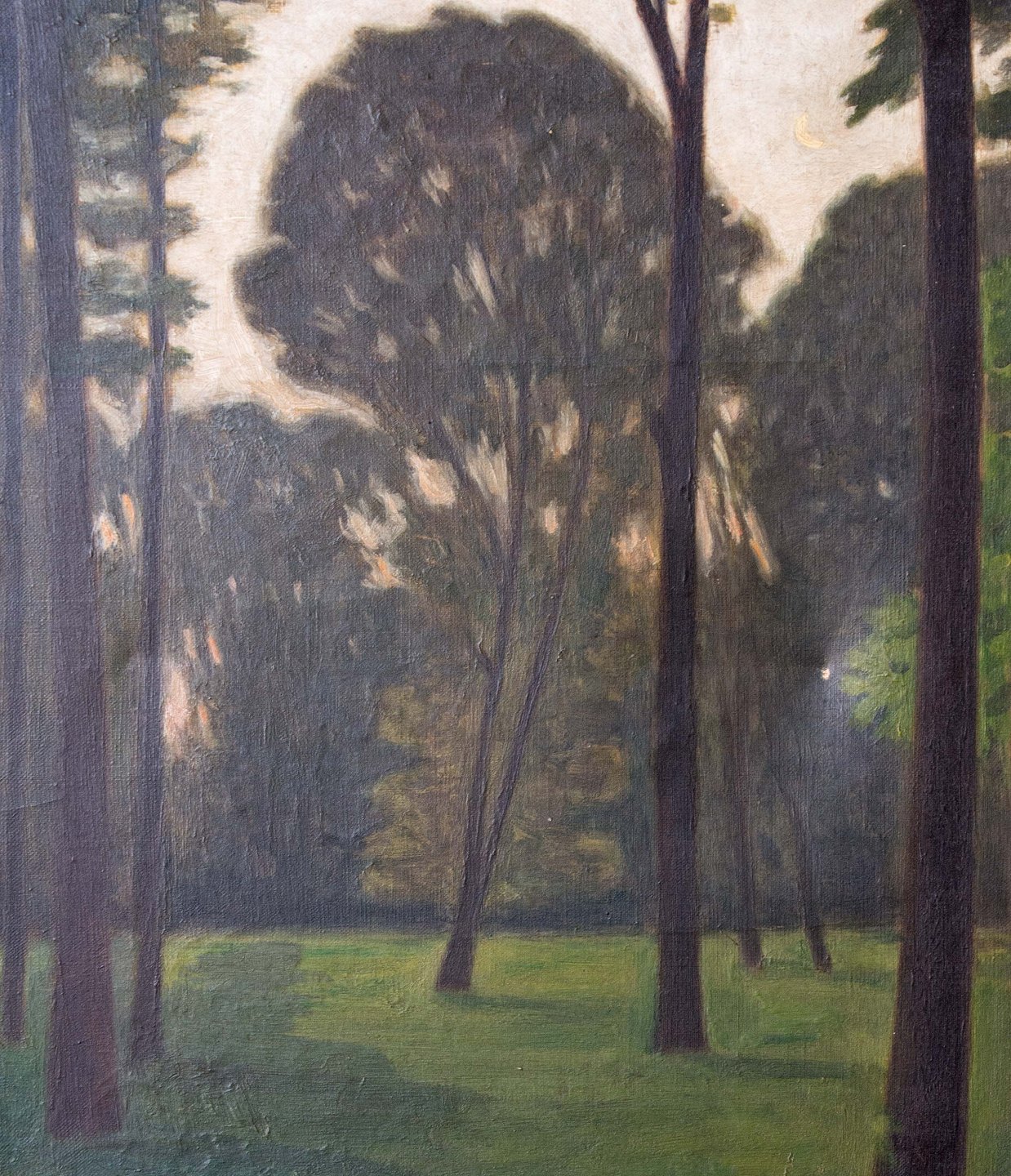 Lærred har fået et punkt pres ellers i god stand. Brugspor på rammen.