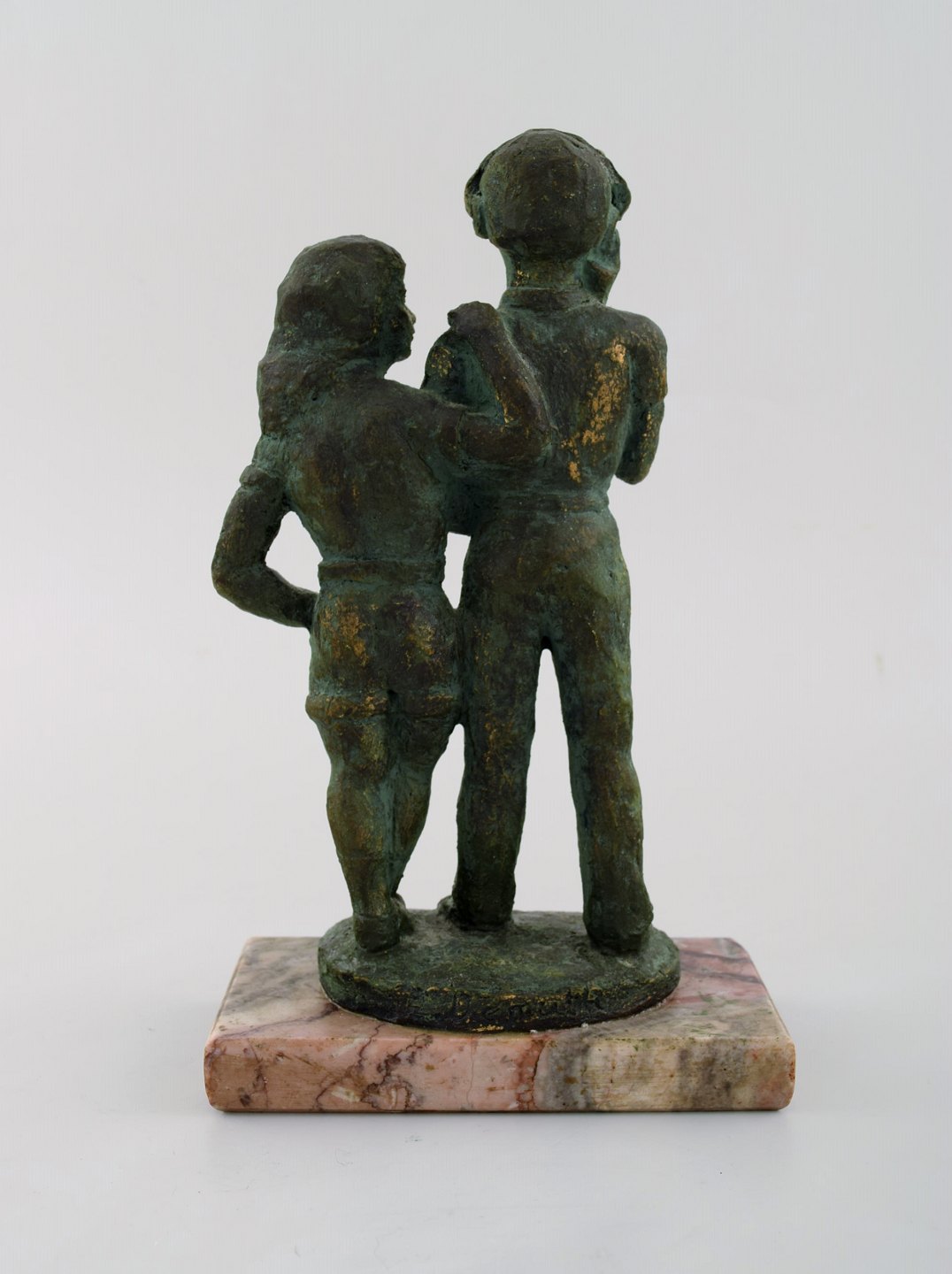 Eric Demuth, svensk billedhugger. Skulptur i bronze på marmor base. Kærestepar. 1940/50'erne.