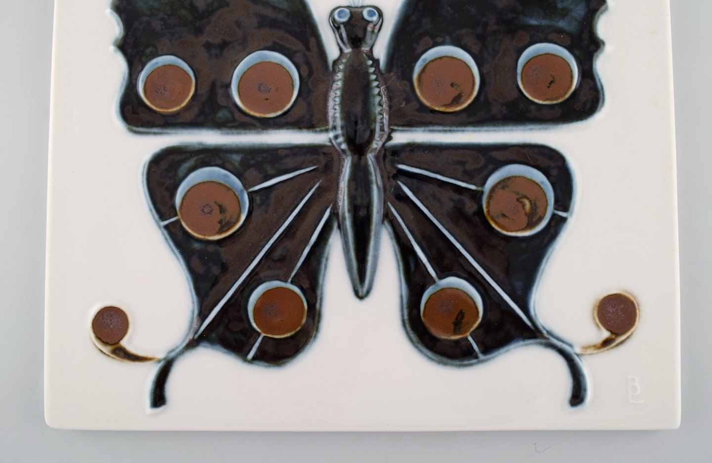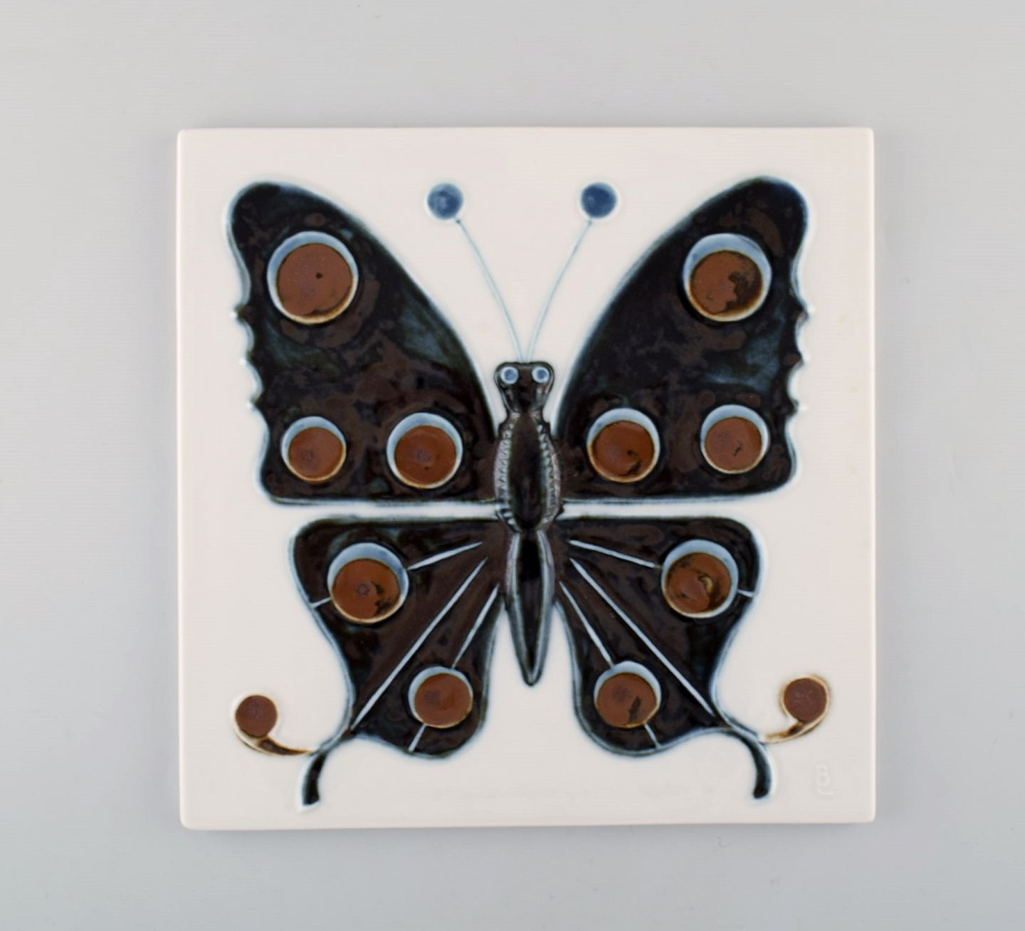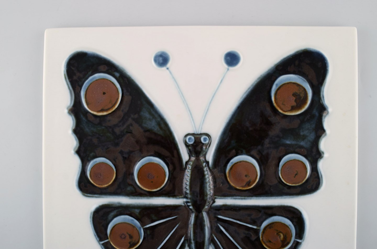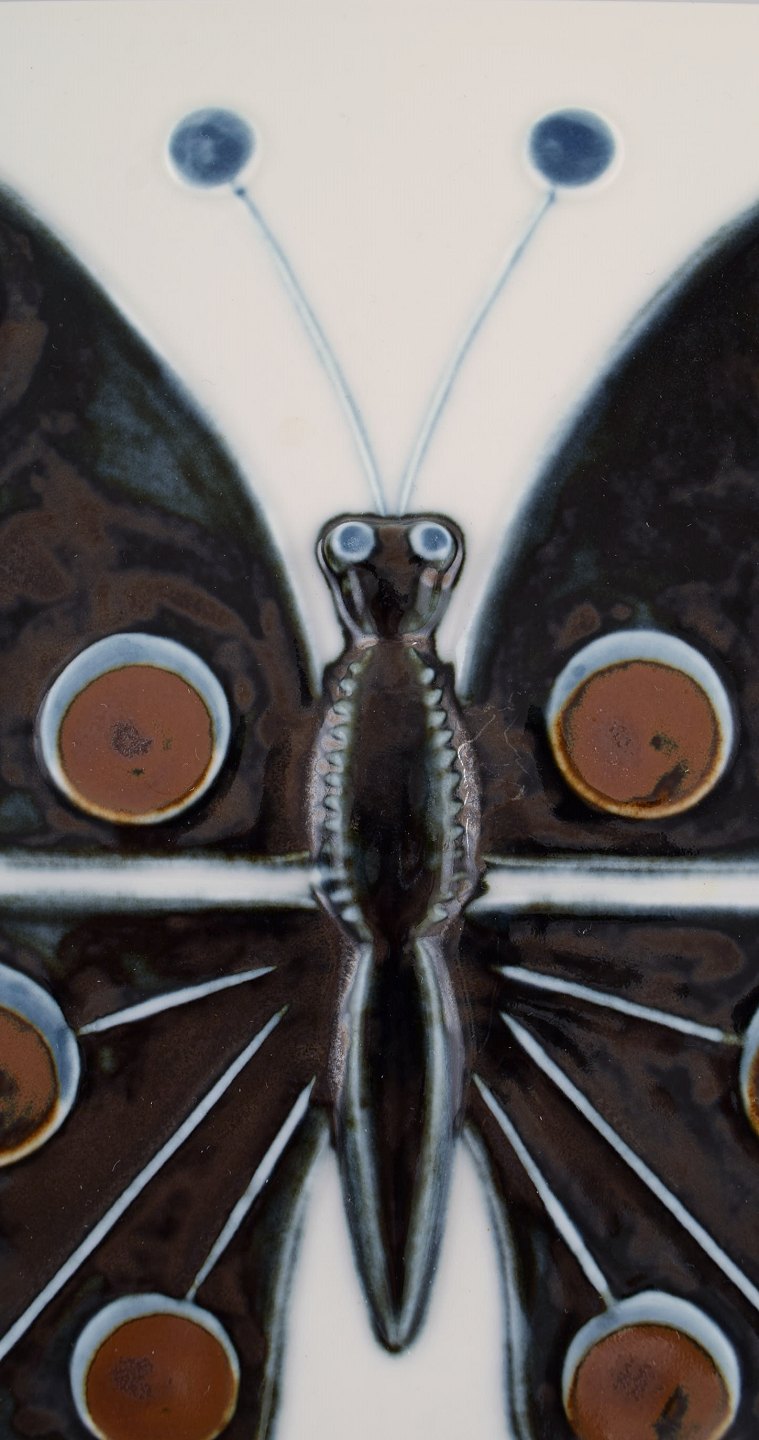 Bertil Lundgren for Rörstrand. "Galleri 2" vægplakette i glaseret porcelæn med sommerfugl. 1970'erne.