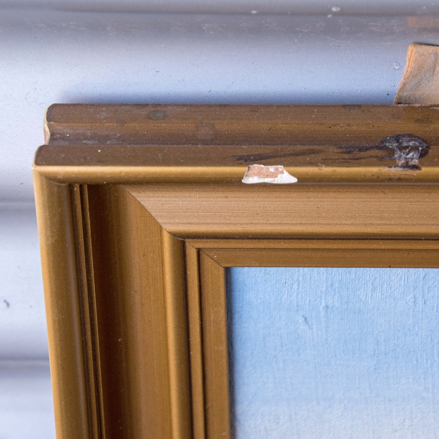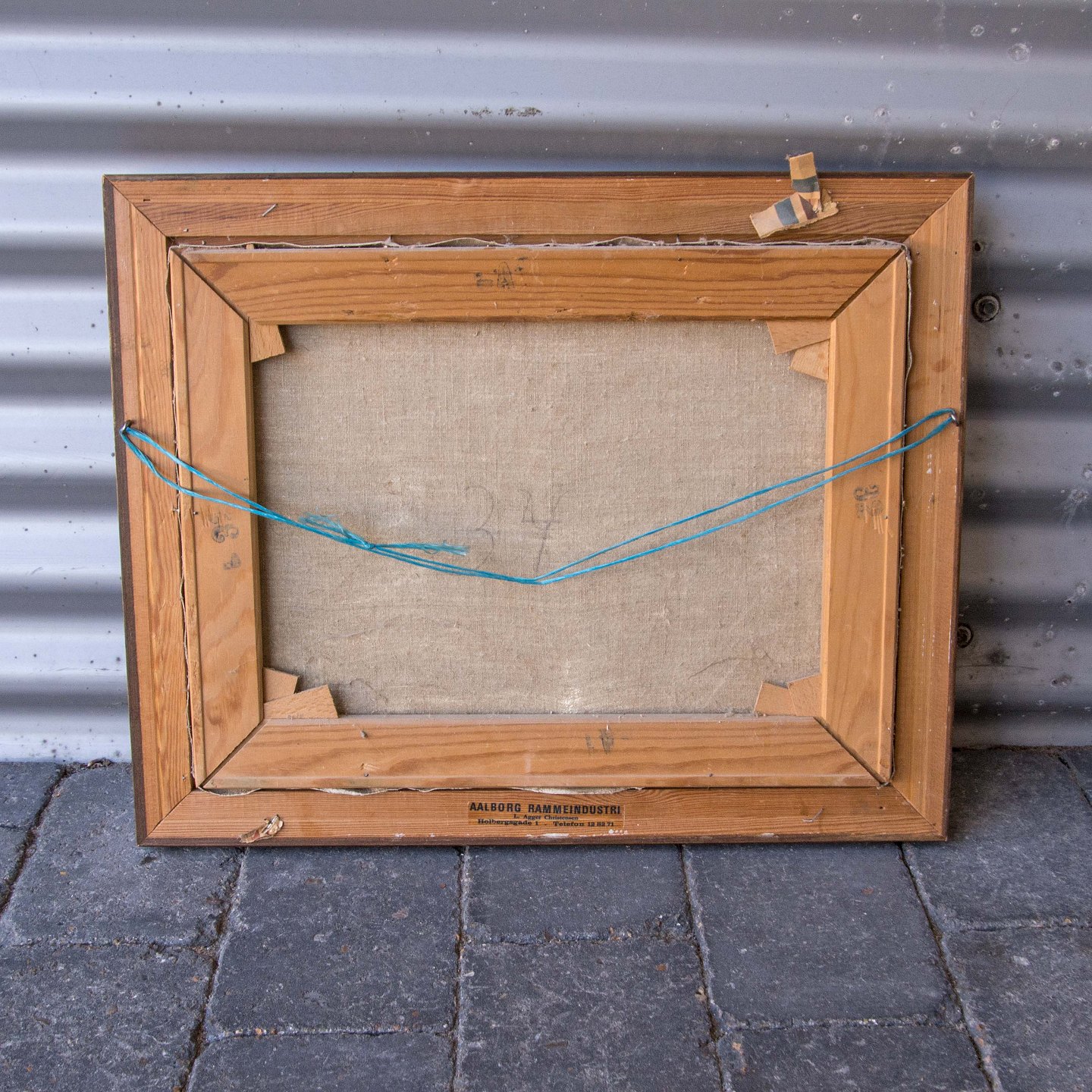 Landskabsmaleri med naturmotiv af sommerhuse i klitområde
