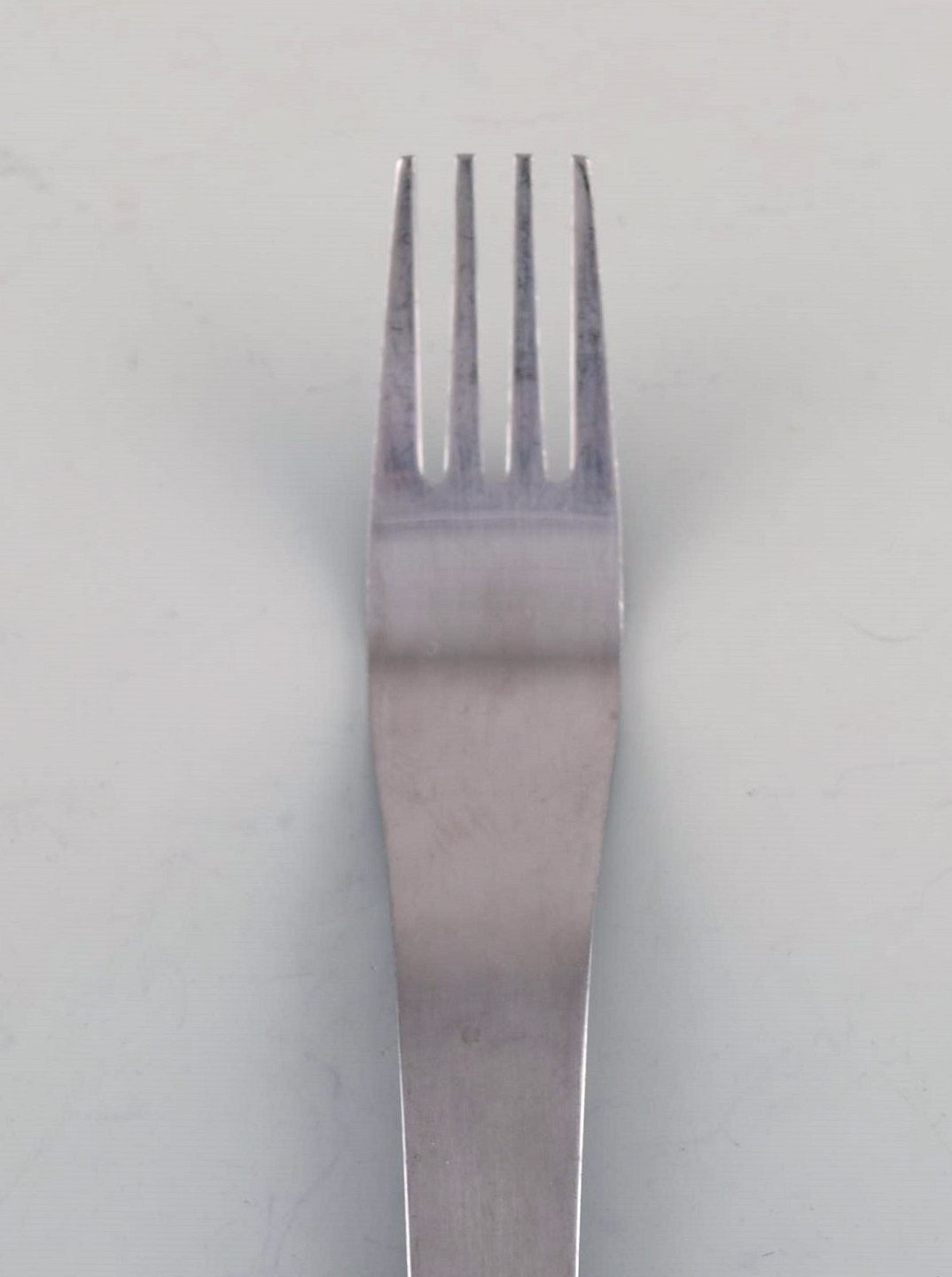 Skandinavisk design. Minimalistisk middagsgaffel i rustfrit stål. 1960'erne. Tre stk på lager.
