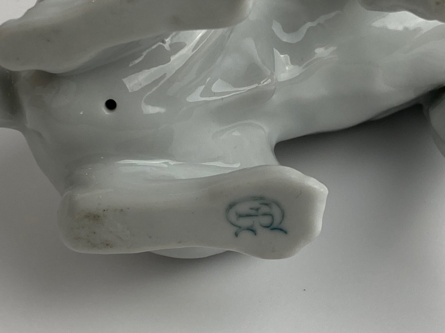 Porcelænshund fra Fritz Pfeffer, Gotha, Tyskland, produceret imellem år 1900 og 1934