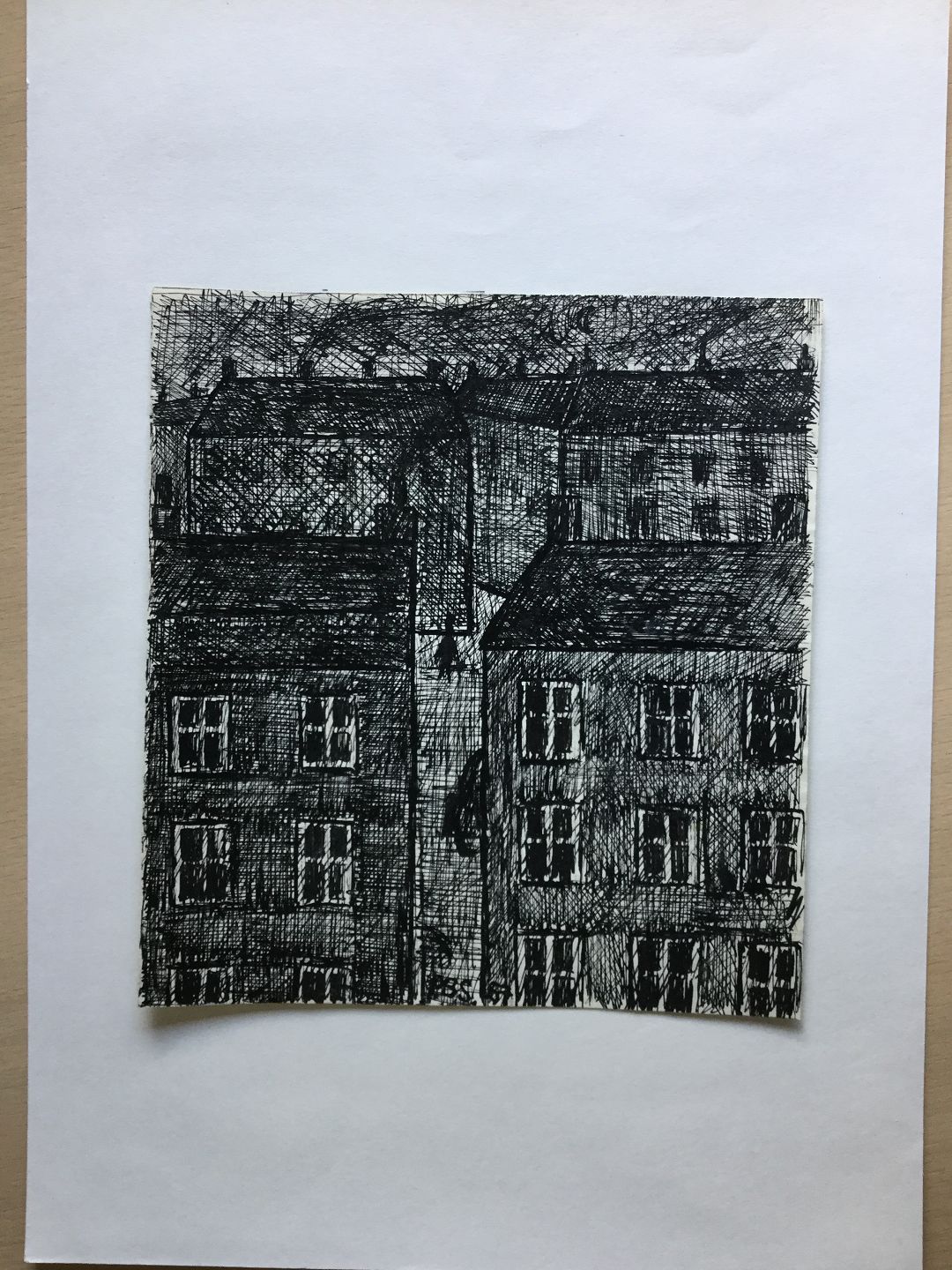 Tegning af Peder Brøndum Sørensen - Højhuse i byen 1967.