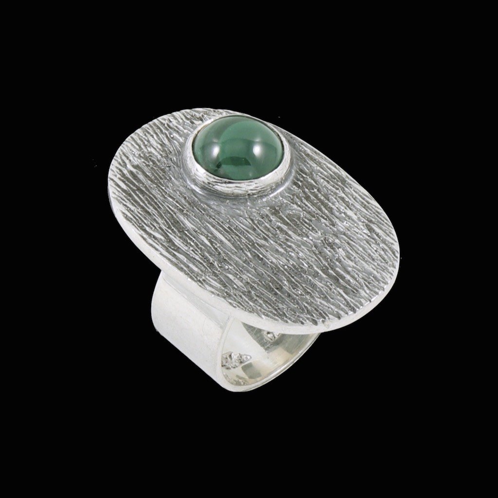 Flemming Knudsen. Ring i sterling sølv med malakit. 1960'erne