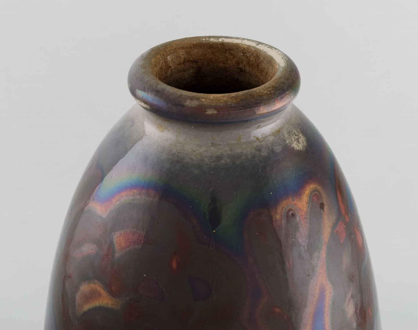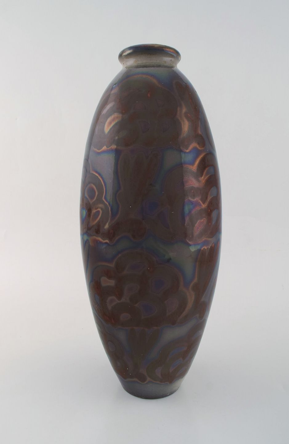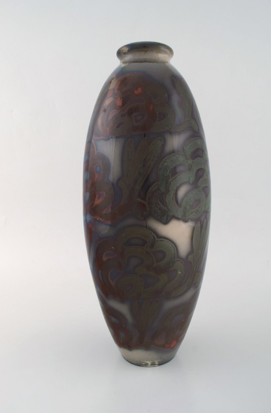 Stor Höganäs art nouveau vase i glaseret keramik. Smuk lustreglasur. 1920/30'erne.