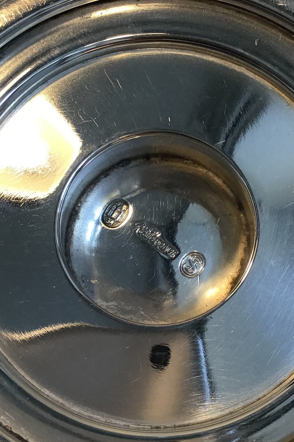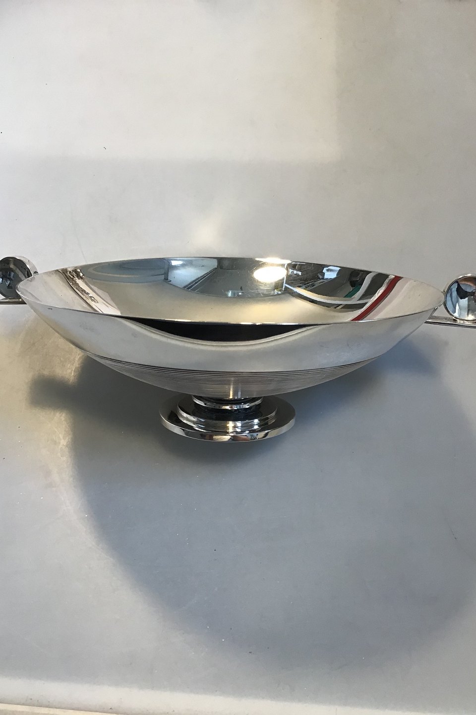 Rich. Jørgensen Sølv Opsats Art Deco Måler Diam 19.5 cm (v håndtag 24 cm) H 7 cm Vægt 466 gr