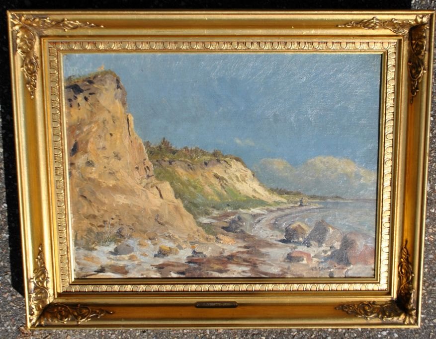 Schiøttz-Jensen, N. F. (1855 - 1941) Danmark: Kyst scene. Olie på lærred. Signeret. 32 x 44 cm.