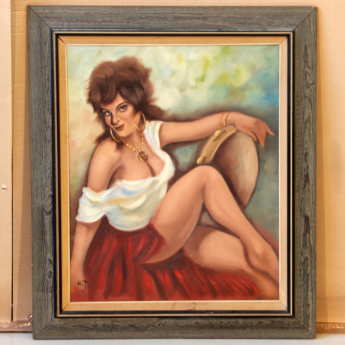 Kvinde, olie på lærred i ramme af bejdset egetræ, (HxB 86x73 cm), signeret