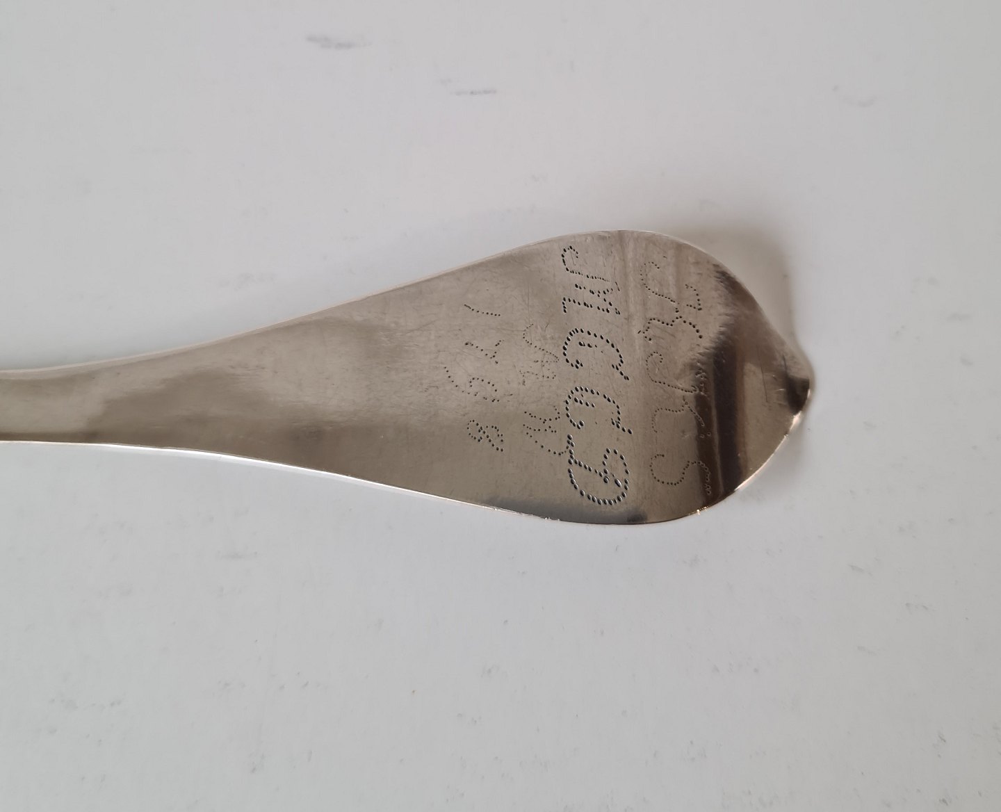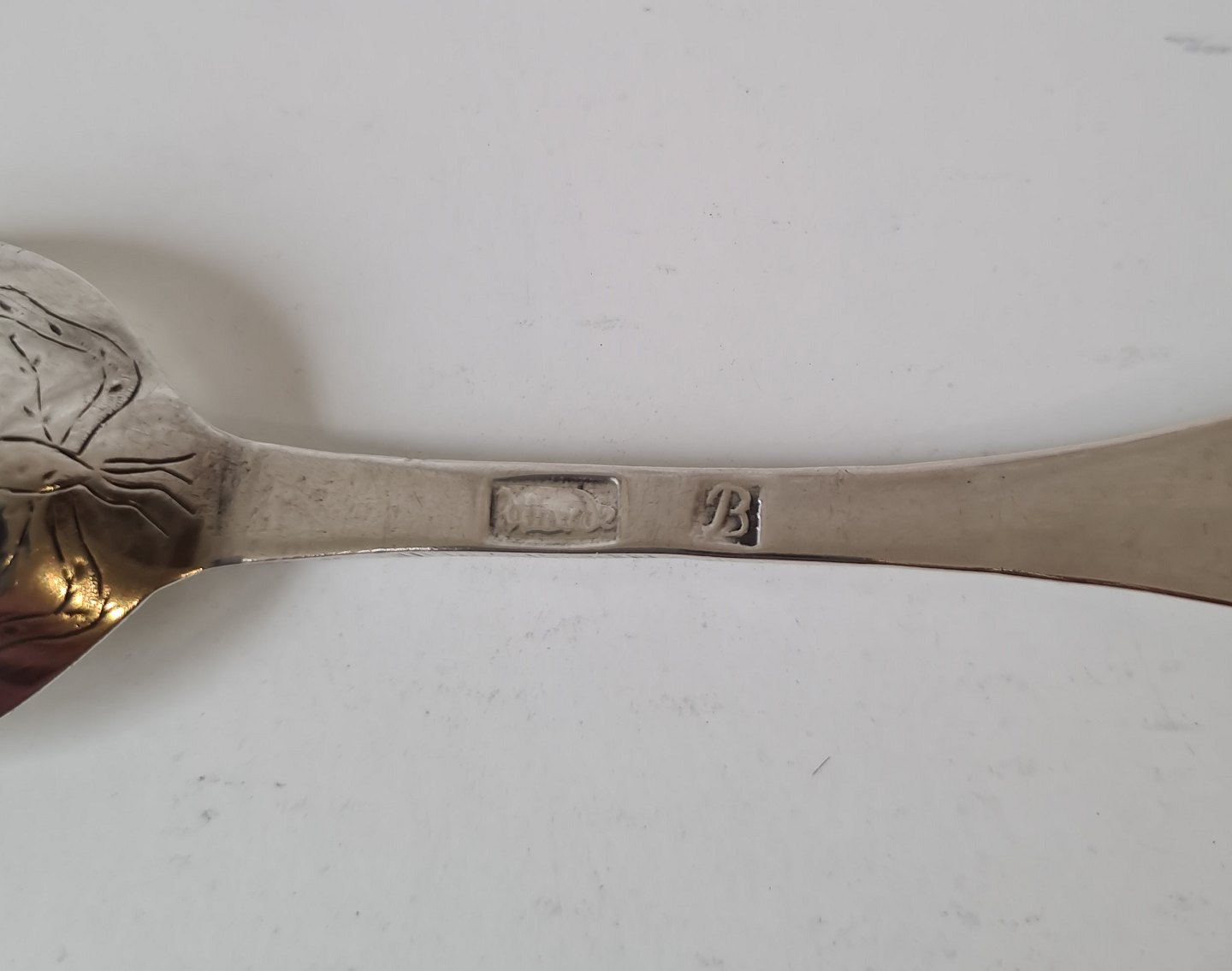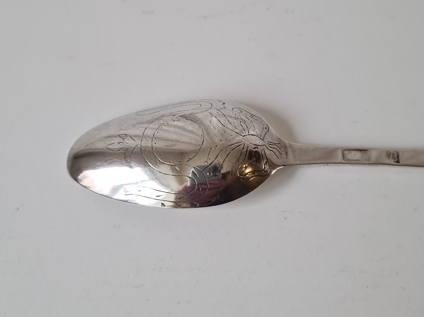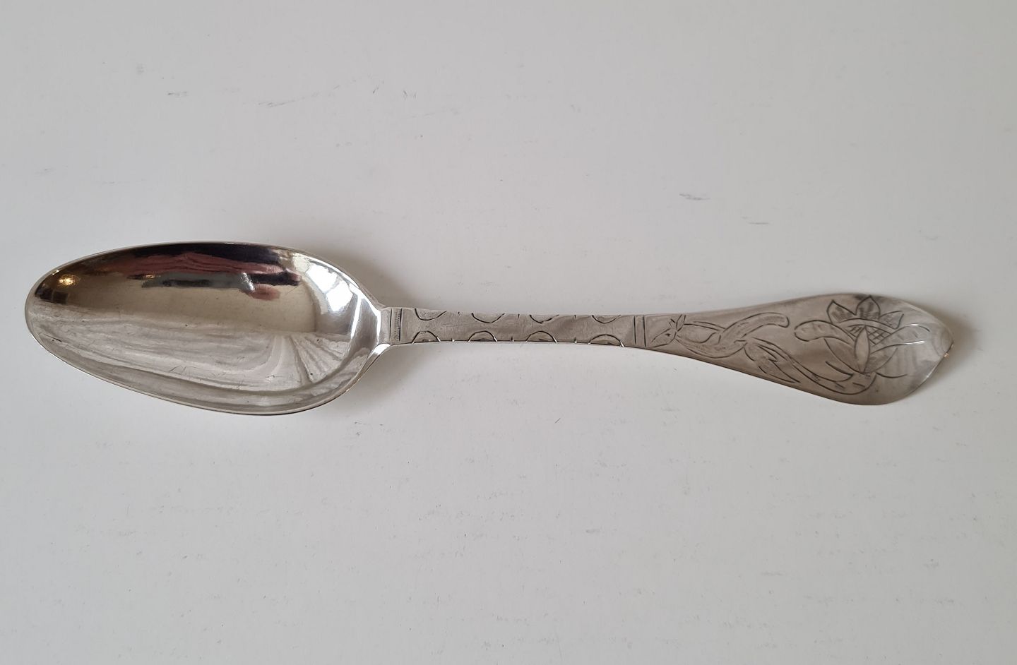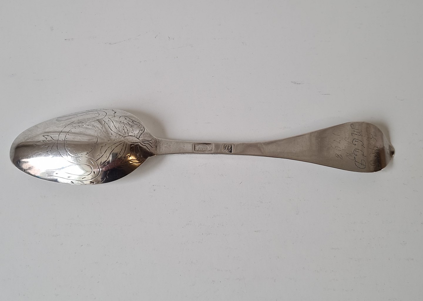 Smuk Barok ske i sølv - Varde sølvsmed Johannes Nissen Broesbøl 1743-1835.