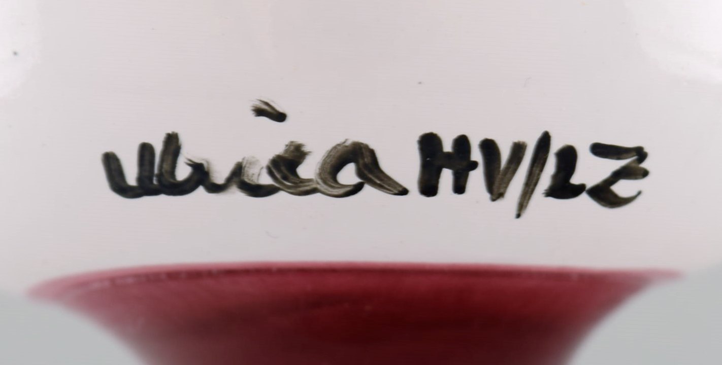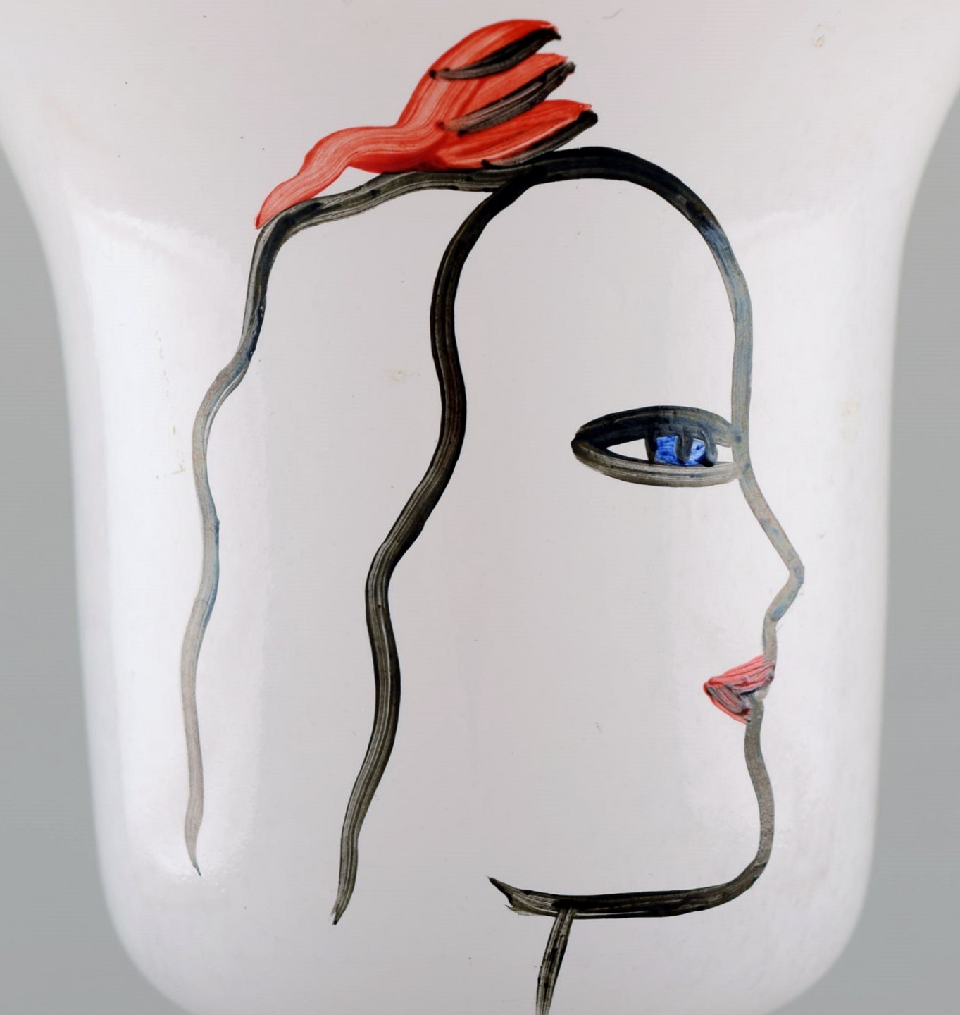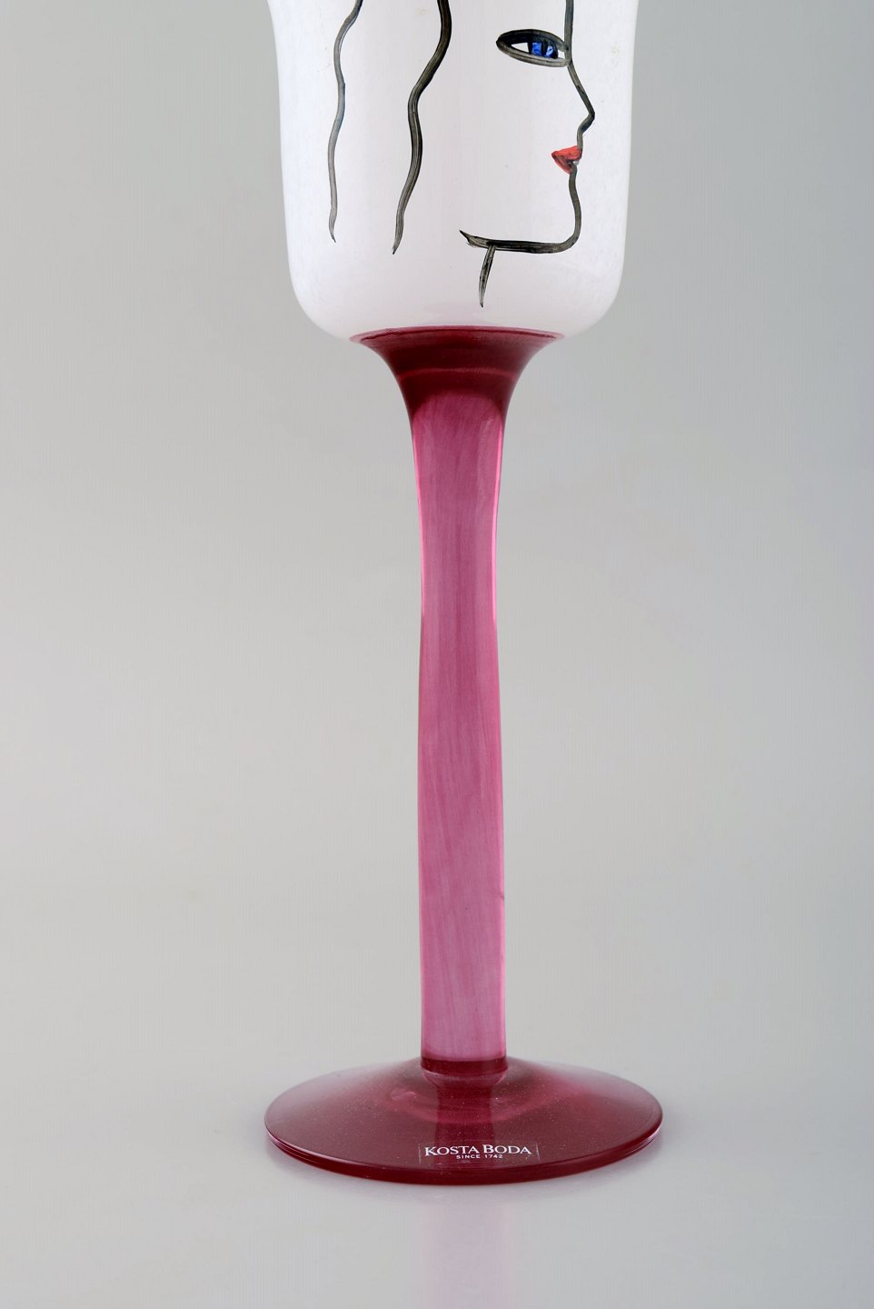 Ulrica Hydman Vallien for Kosta Boda. Håndmalet vinglas i mundblæst kunstglas dekoreret med kvindeansigt. 1980'erne.