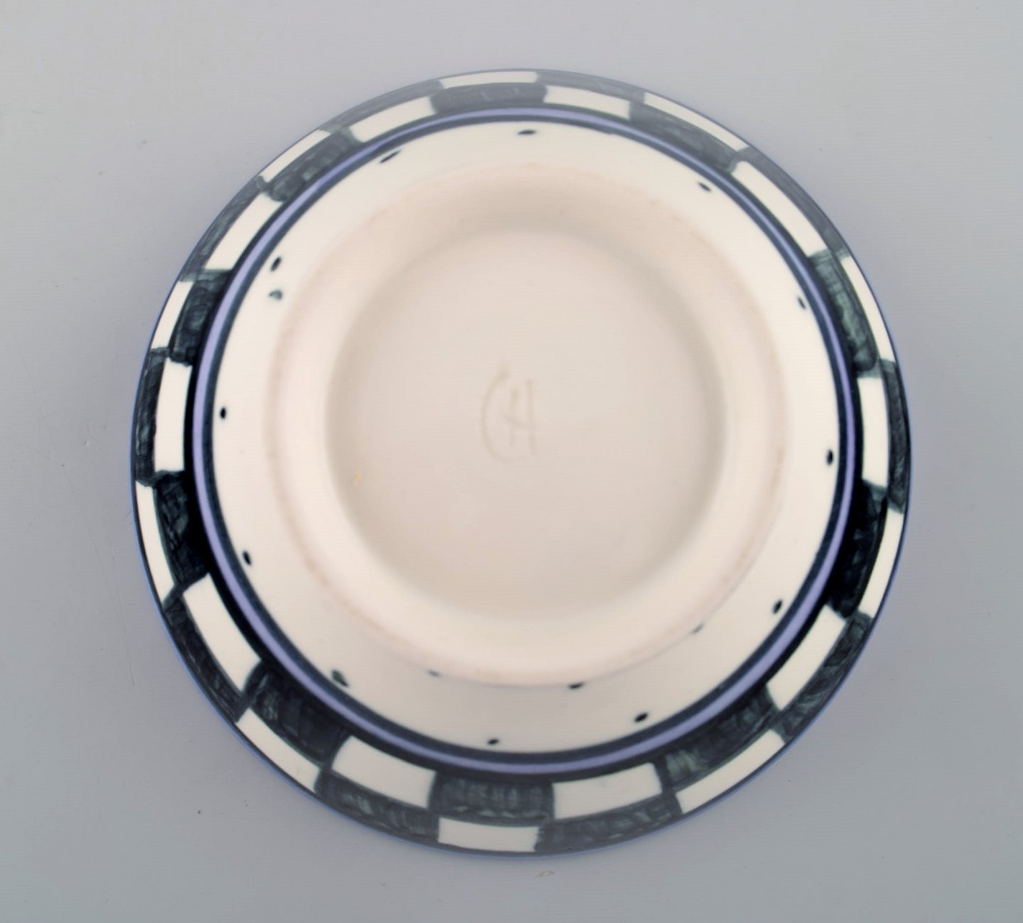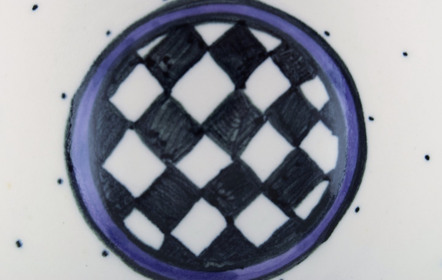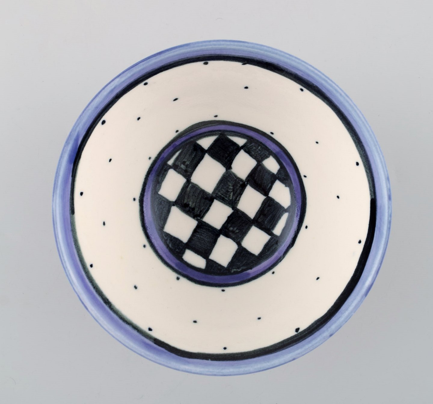 Dansk keramiker. Unika skål i håndmalet keramik. Ternet design. Sent 1900-tallet.