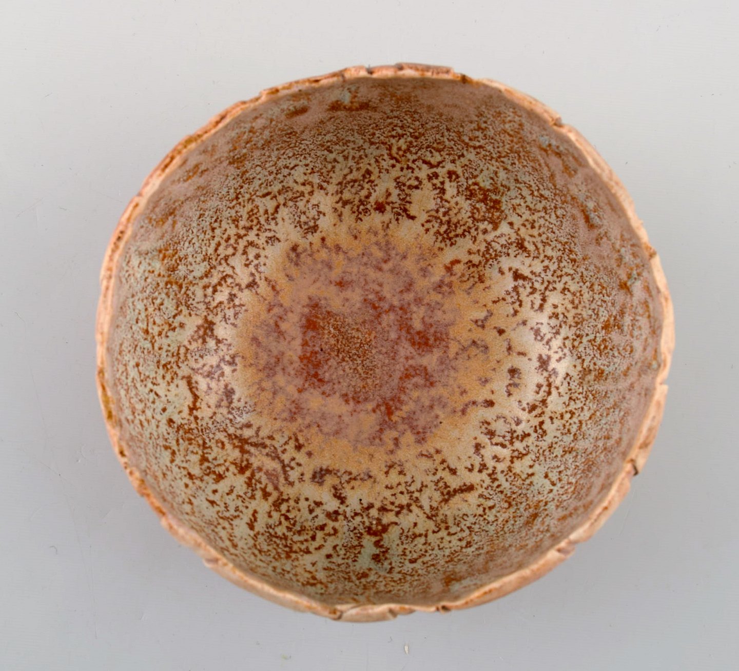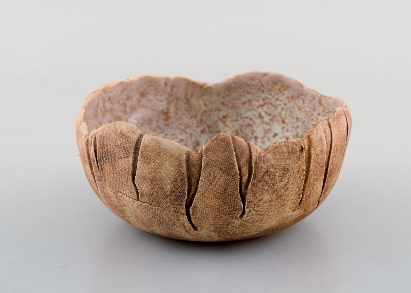 Lizzie Schnakenburg Thyssen (født 1925), dansk kunstner og keramiker. Unika skål i keramik. Dateret 1986.
