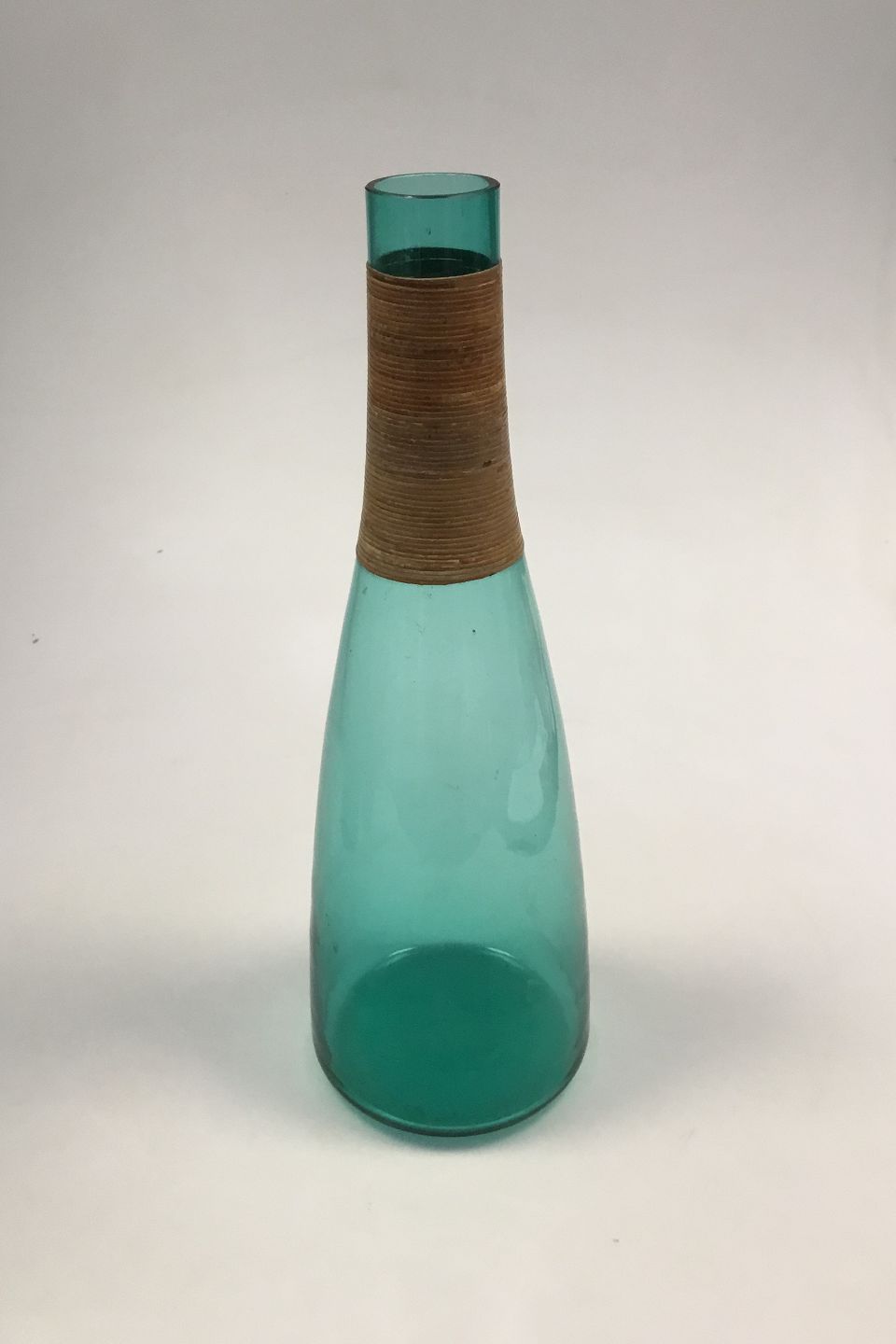 Kastrup Glasværk Opaline form Grøn Karaffel med bambusbevikling. Jacob E. Bang 1957. Måler 36 cm