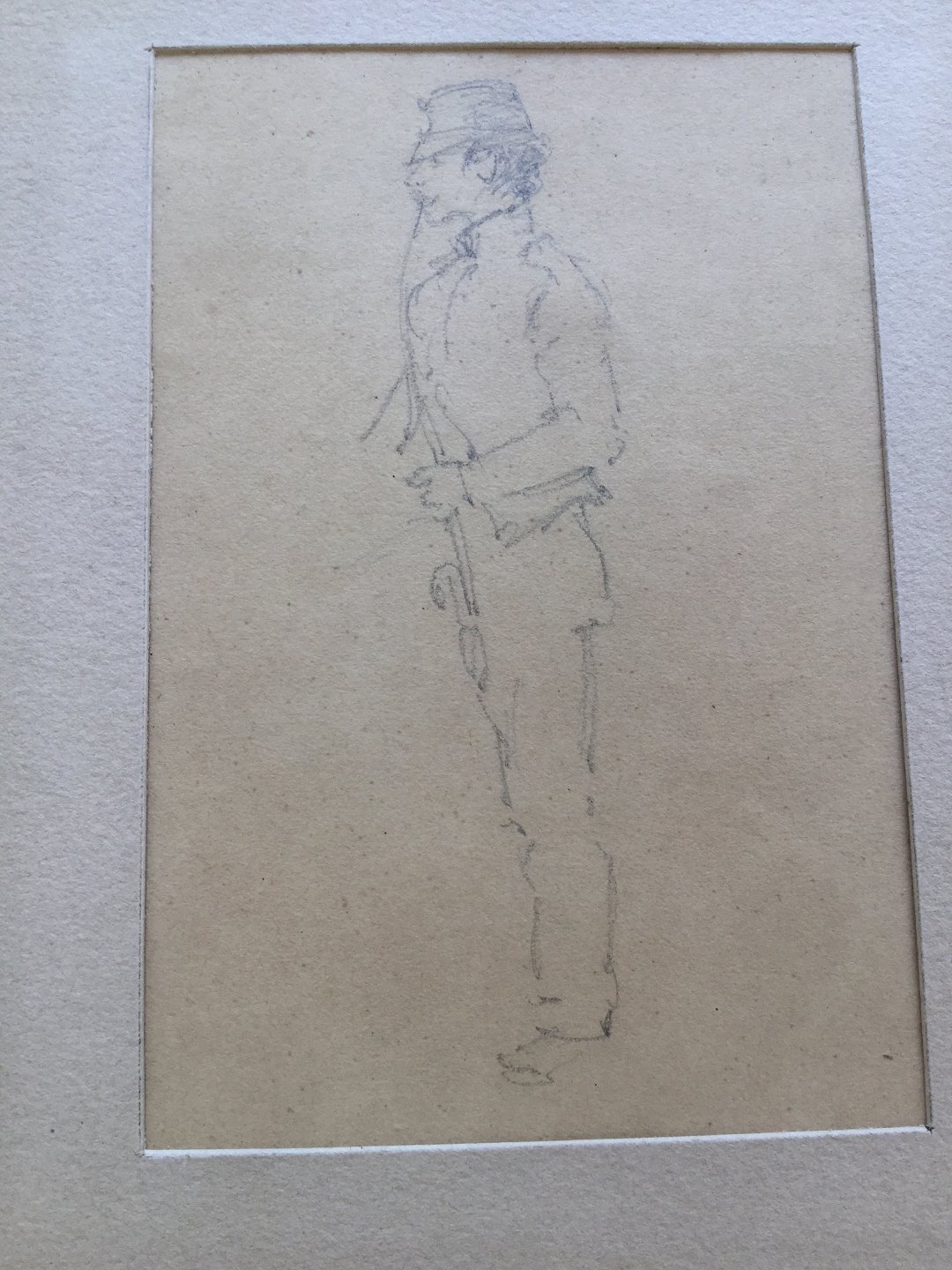 Portrætter og helfigur af soldaterkammerater fra krigen i 1864 samt et studie af kvindehænder.