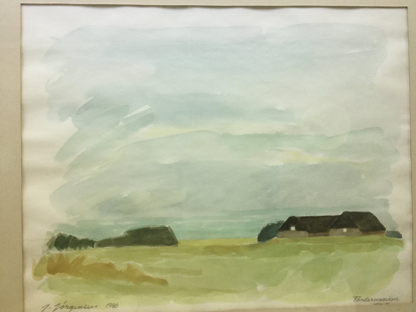 Akvarel af Jørgen Jørgensen - Parti fra Tøndermarsken 1986.