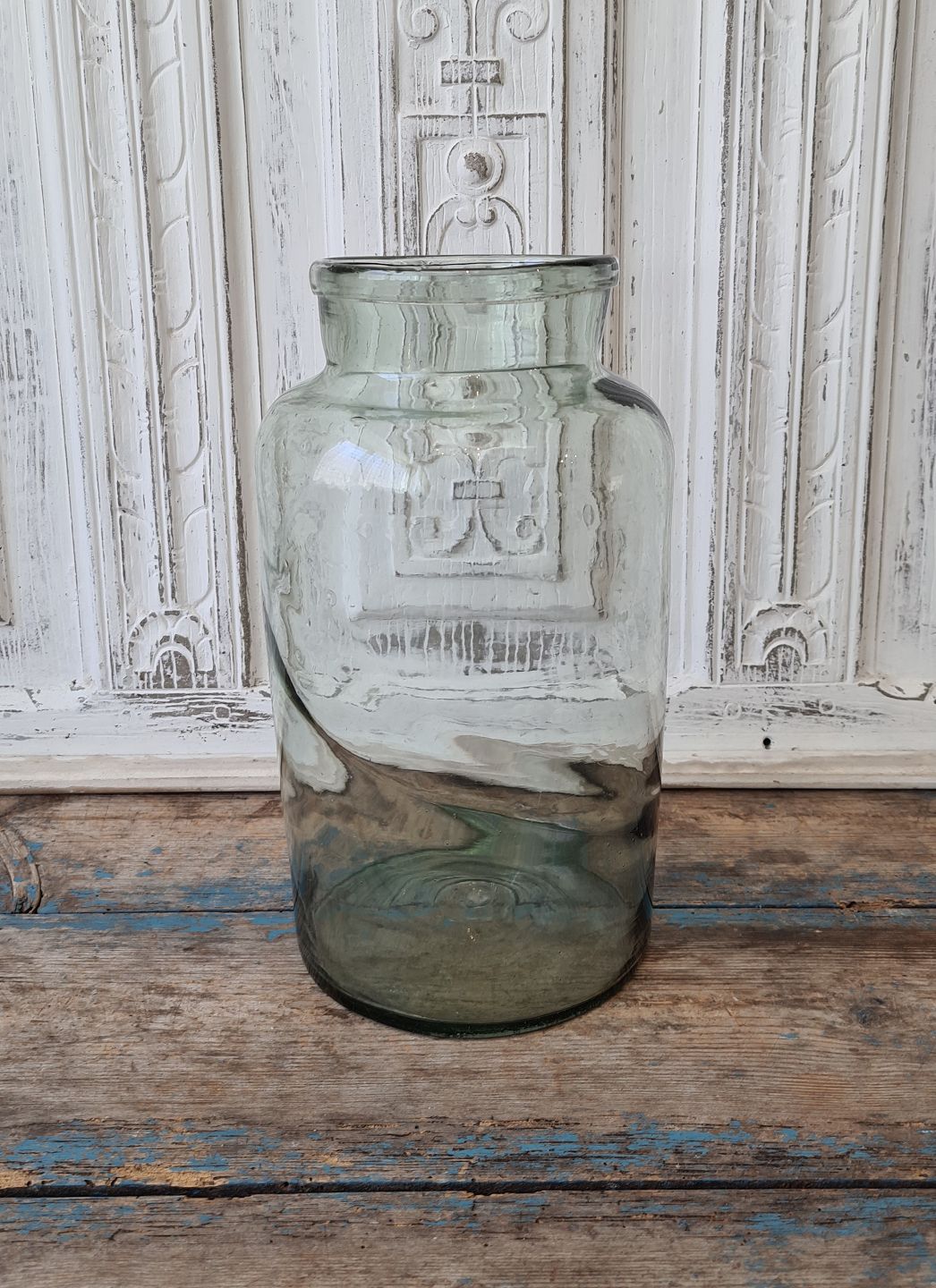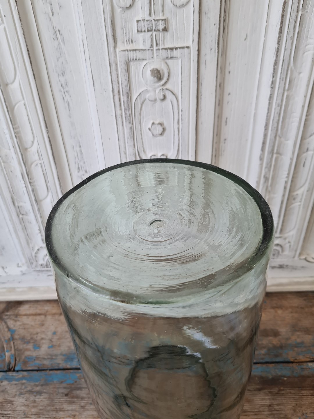 Gammelt mundblæst sylteglas med ombukket rand 31 cm.