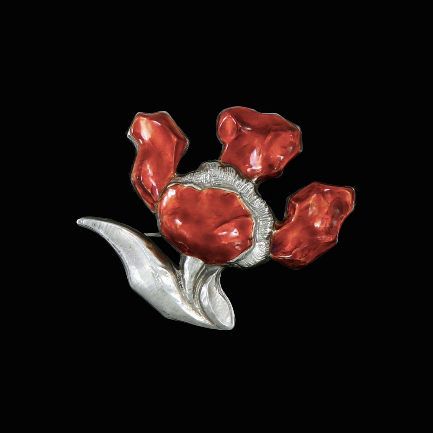 Svend Weihrauch - F. Hingelberg. Art deco broche i sterling sølv med emalje.