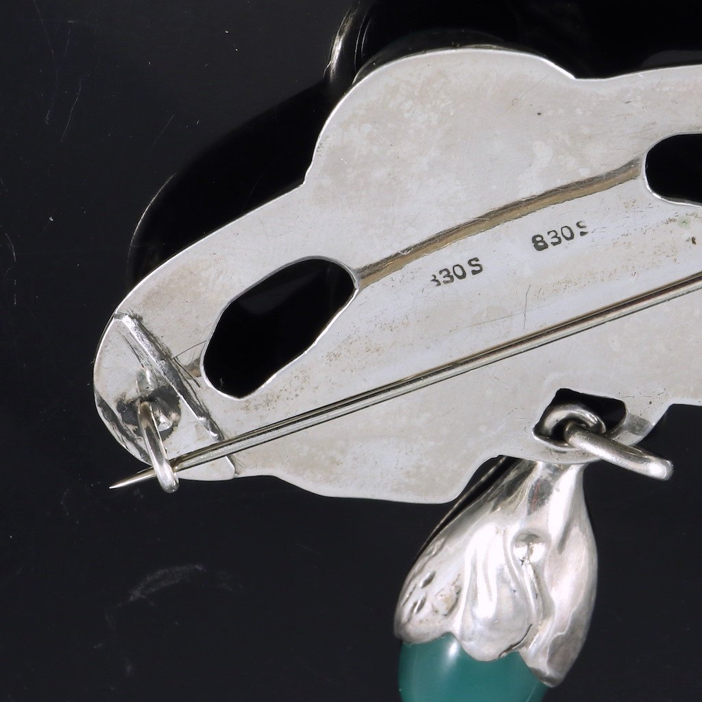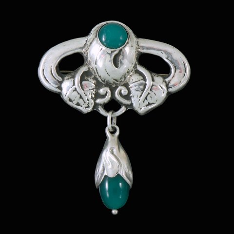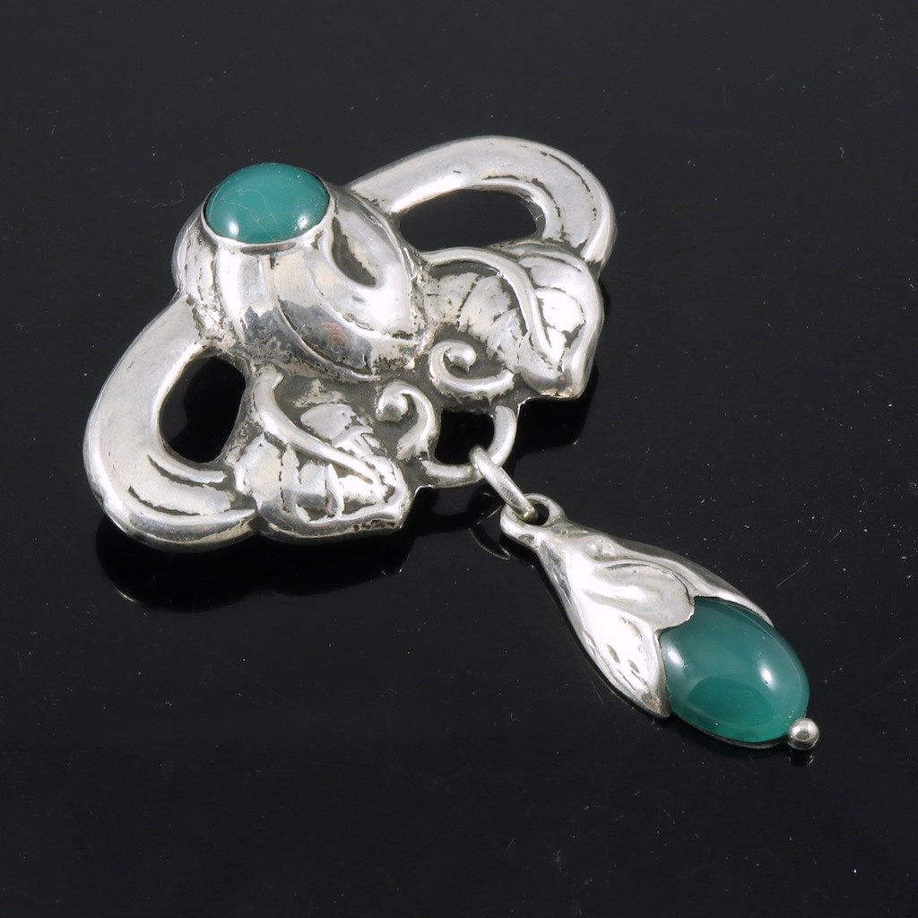 Dansk Skønvirke Broche i Sølv med grøn agat.