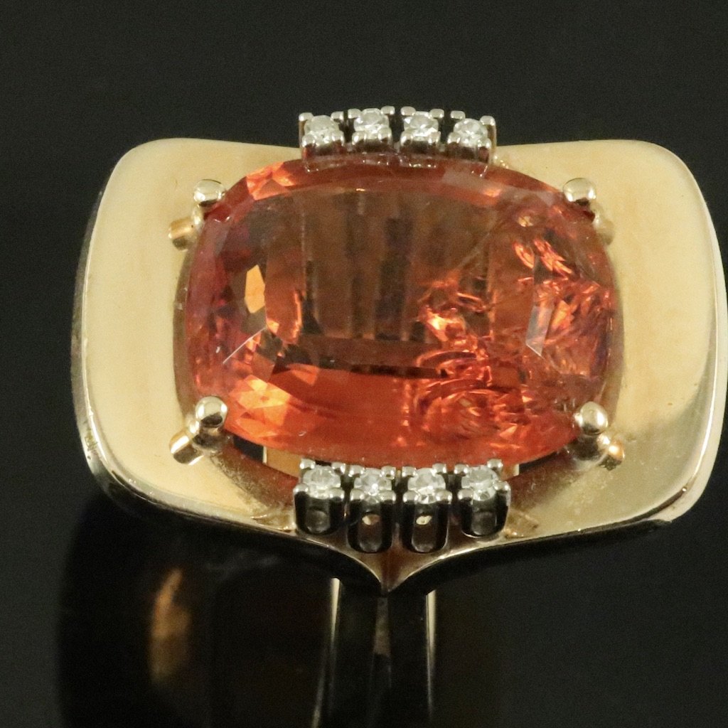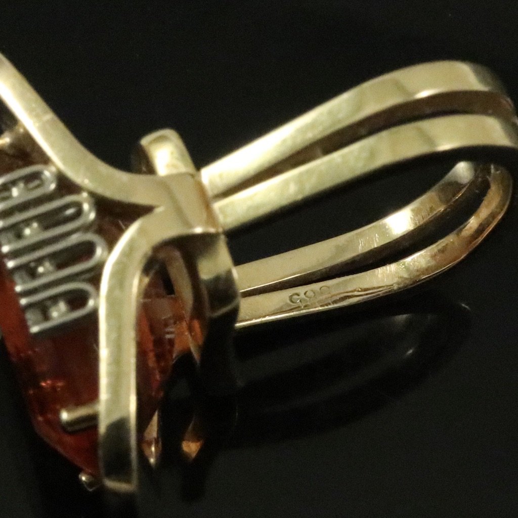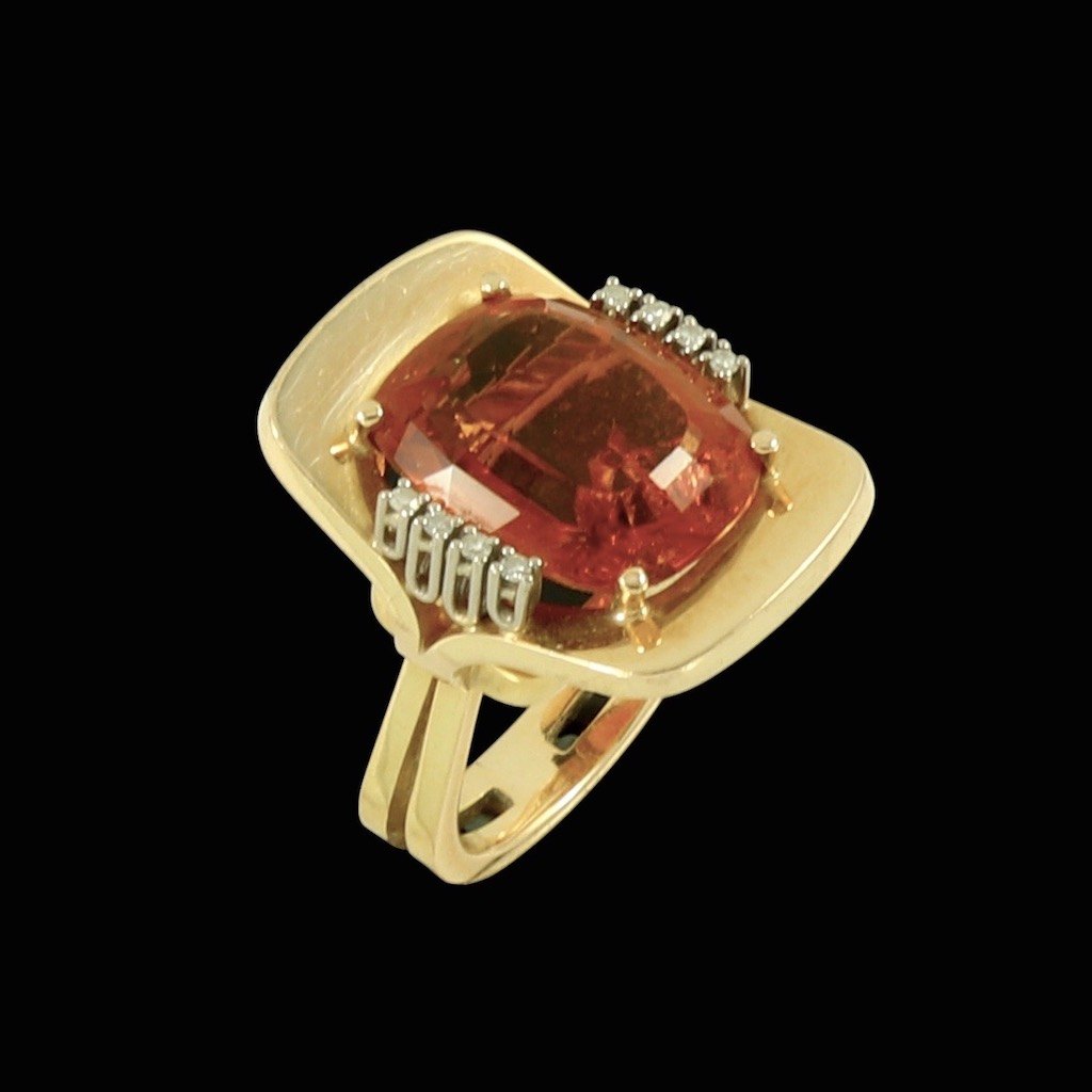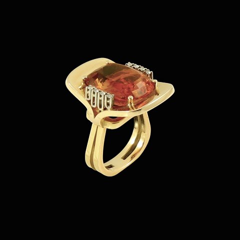 Cocktailring i 14k guld med citrin og diamanter 0.16ct.