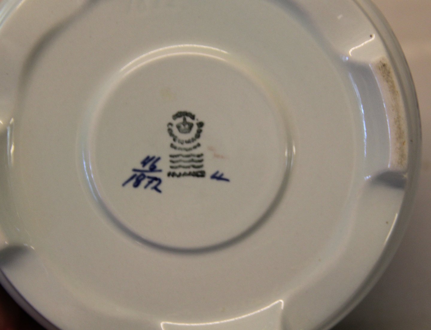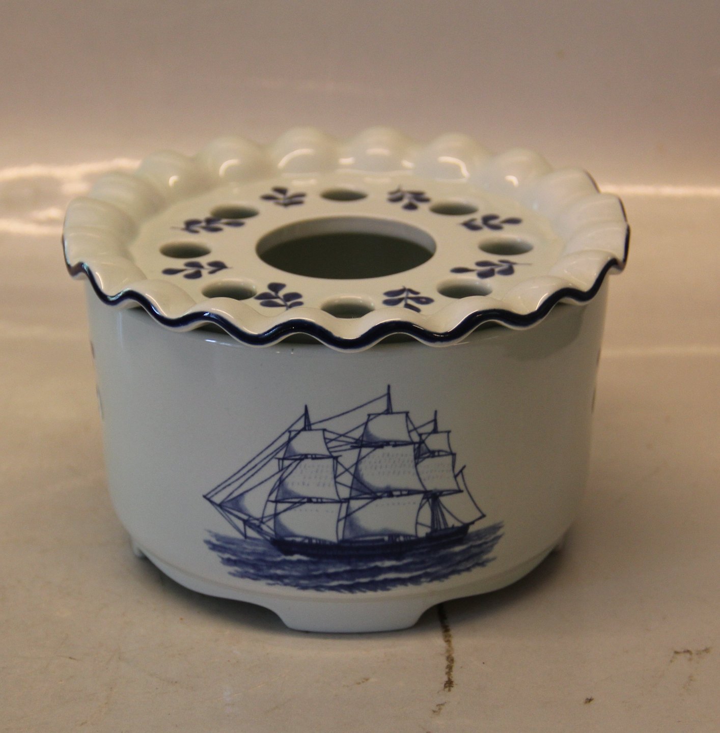 Skibsstellet 1872-46 Tevarmer /Fyrfad 10 x 16 cm Royal Copenhagen Aluminia Tranquebar I fin og hel stand Navy - flåden Låg 1872-11