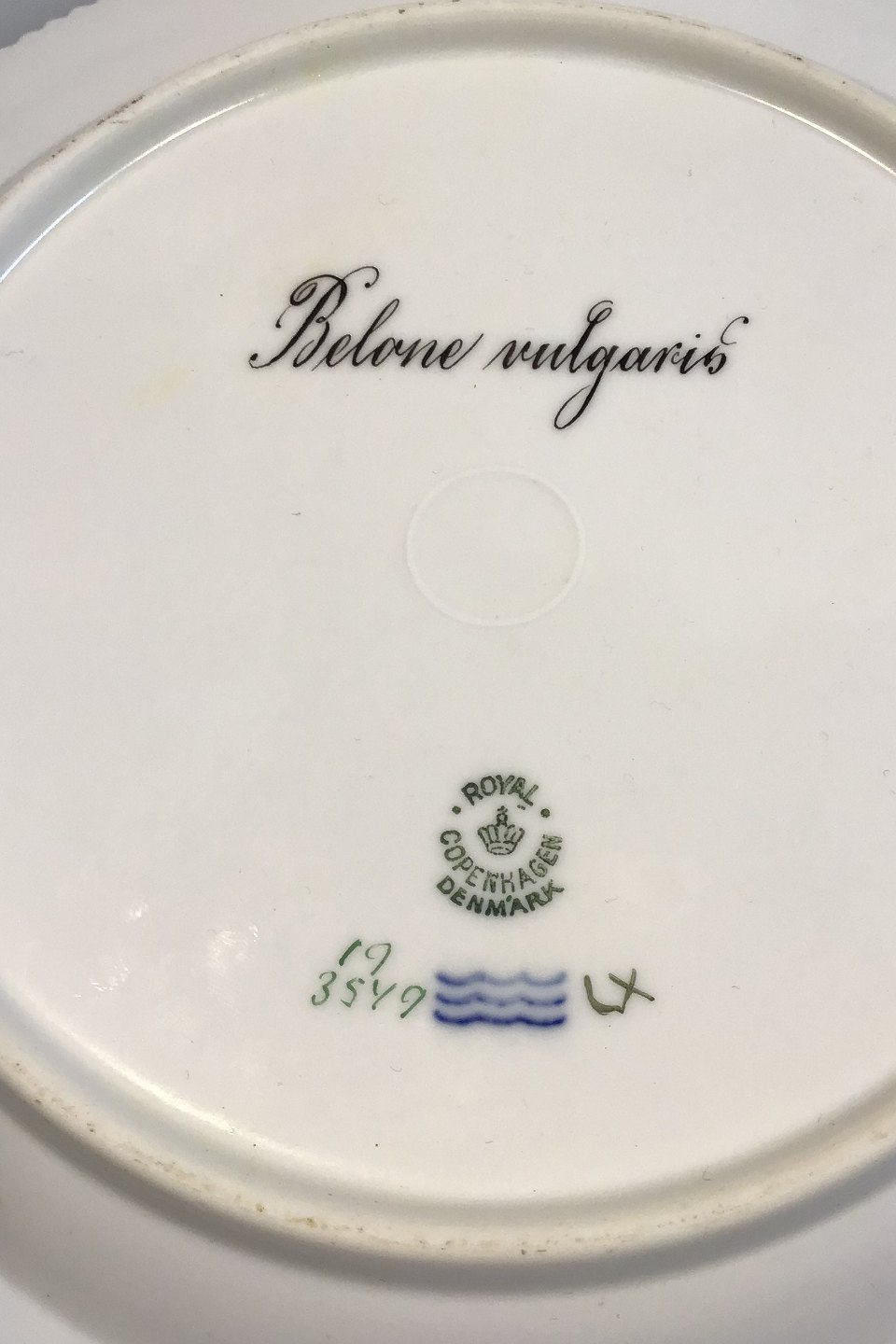 Royal Copenhagen Flora Danica Fisketallerken No 19/3549 Latinsk navn: Belone vulgaris. Måler 25,8 cm