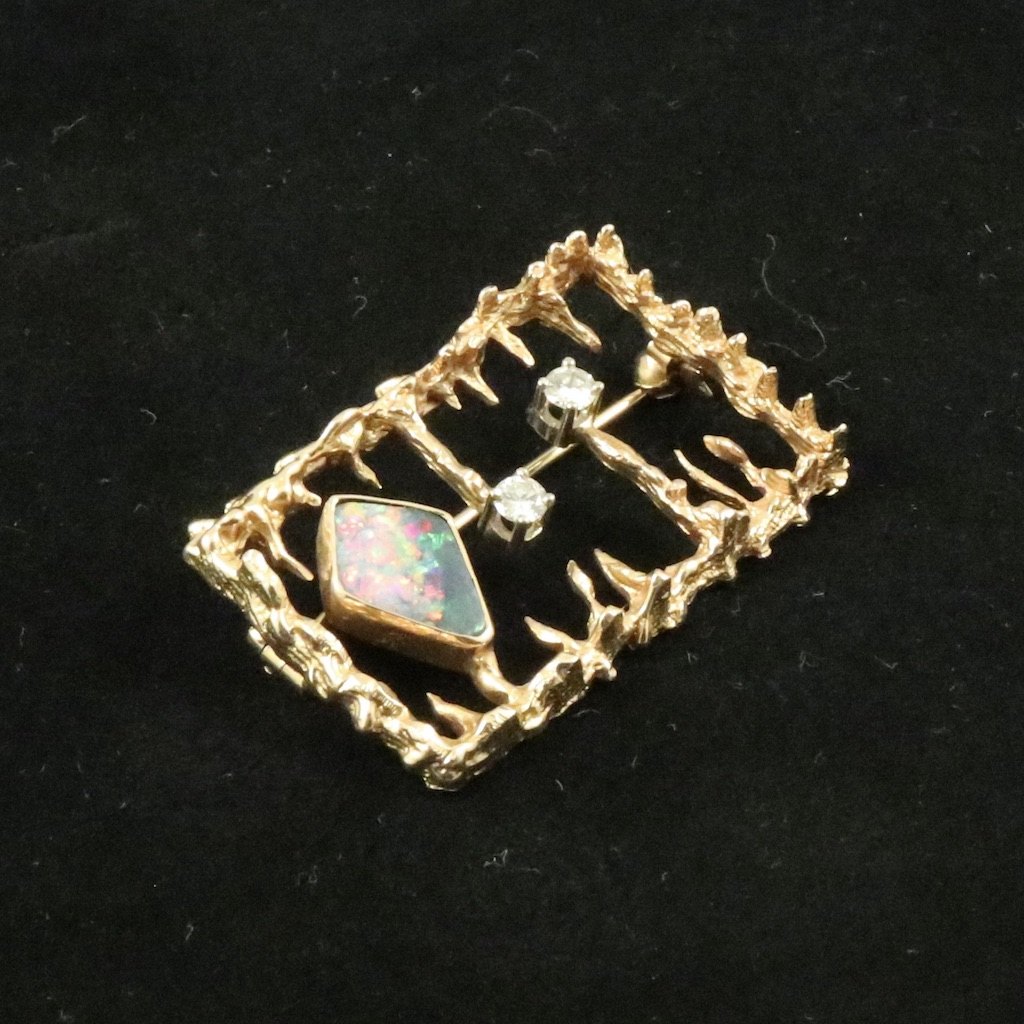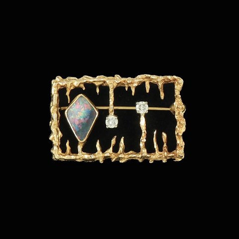 John Victor Rørvig. Vedhæng i 18k guld med opal & diamanter.