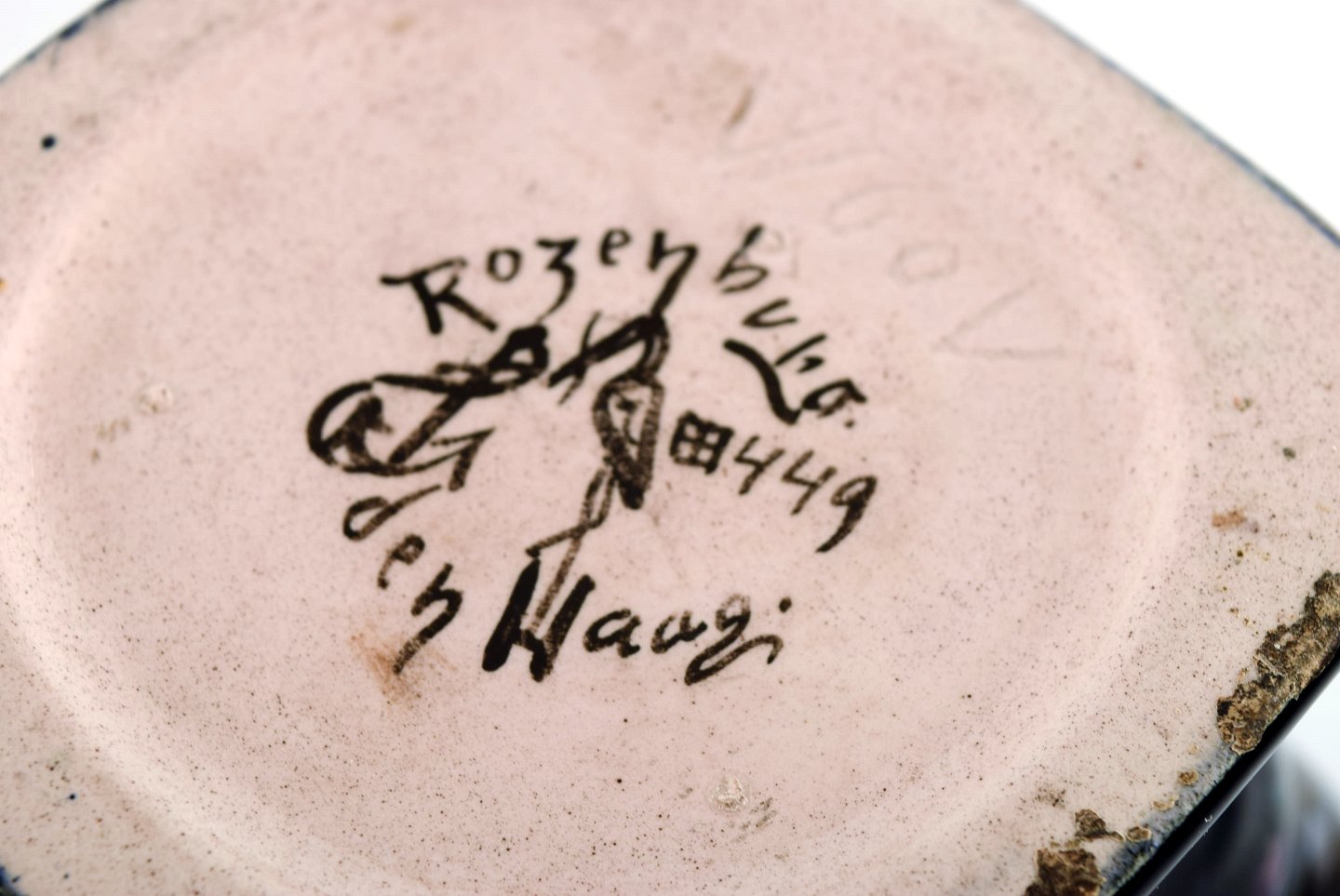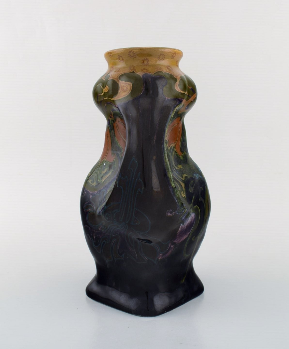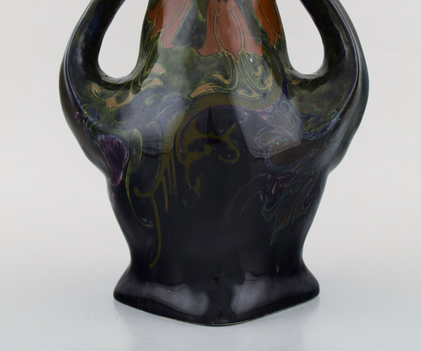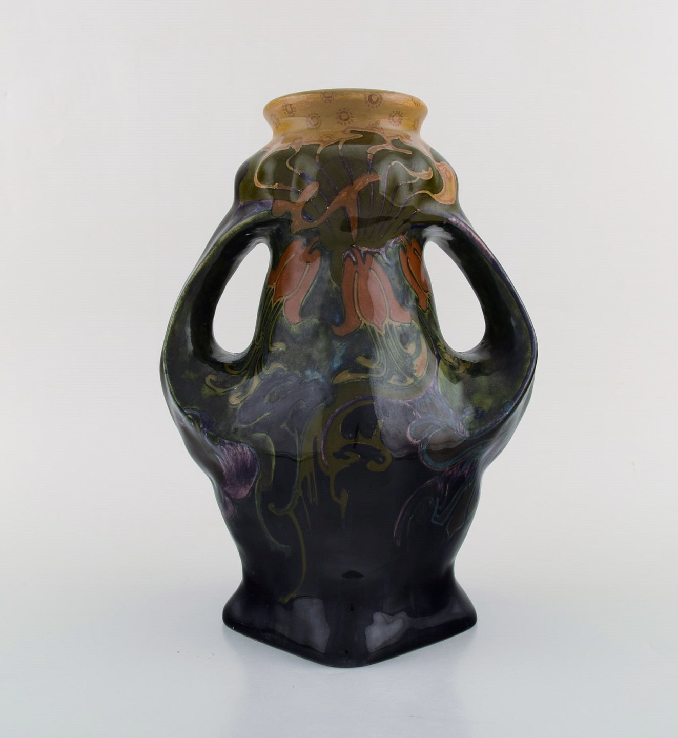 Rozenburg, Den Haag. Large art nouveau vase with gloves in glazed ceramics with flowers. 1910 / 20's.