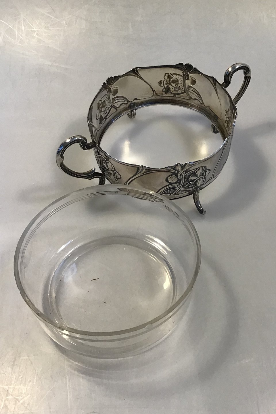 Sølvskål med glasindsats
