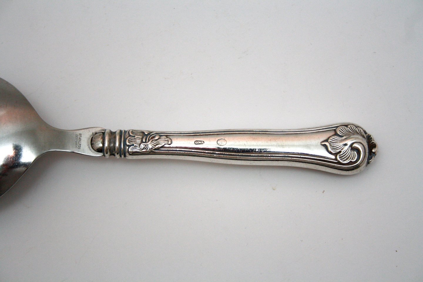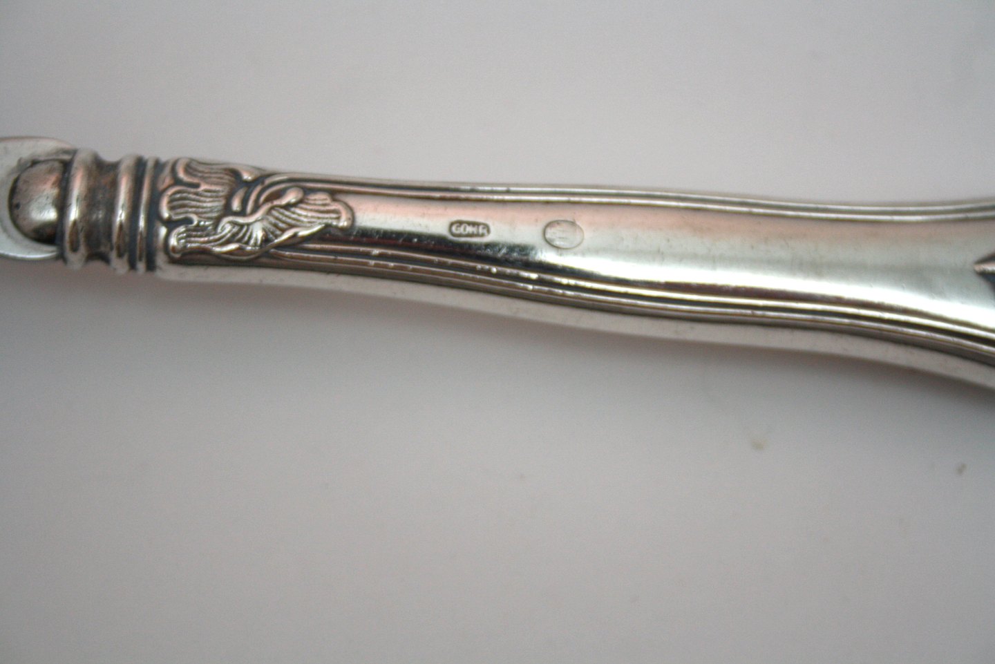 Sachsisk, Saksisk serveringsske, COHR sølv og rustfri stål. Længde 23 cm. Pris: 375 kr.
