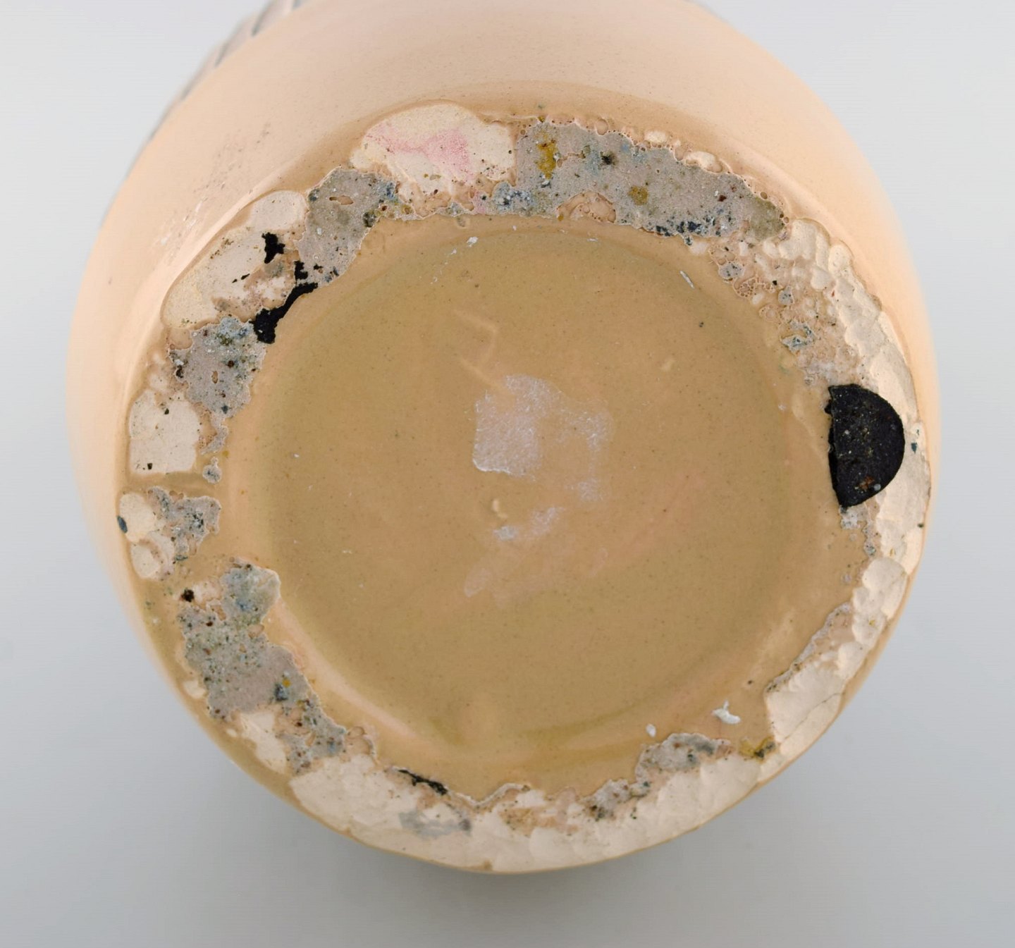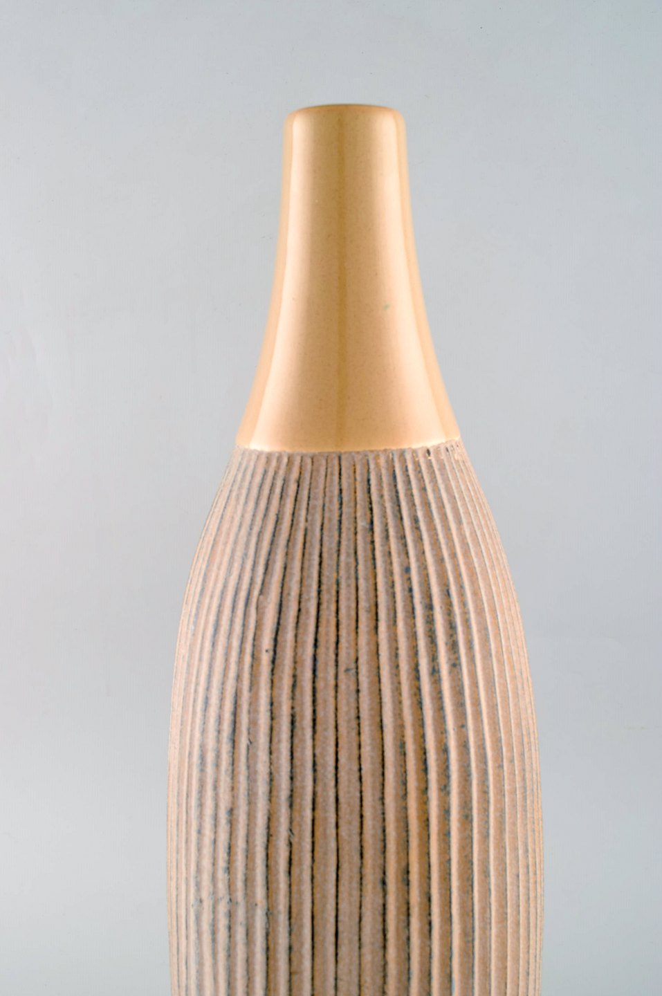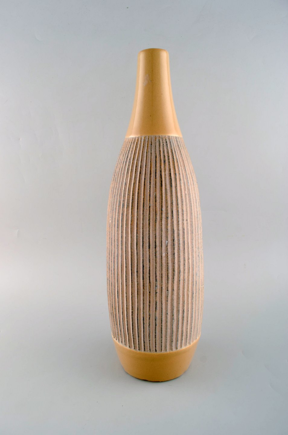 Skandinavisk keramiker. Stor vase i glaseret keramik med rillet korpus. Sent 1900-tallet.