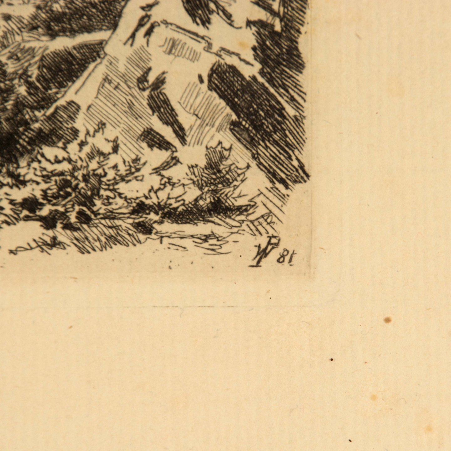 Radering med motiv af en lille dreng og ged