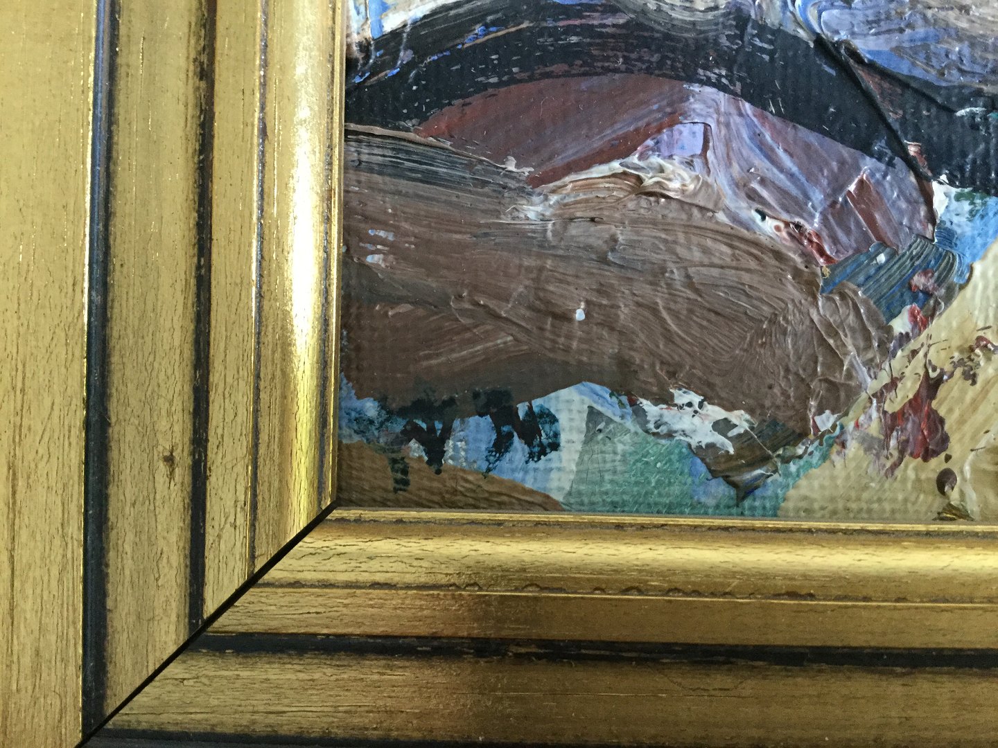 Maleri af William Hansen - Landskab med gårde og fugle 1974