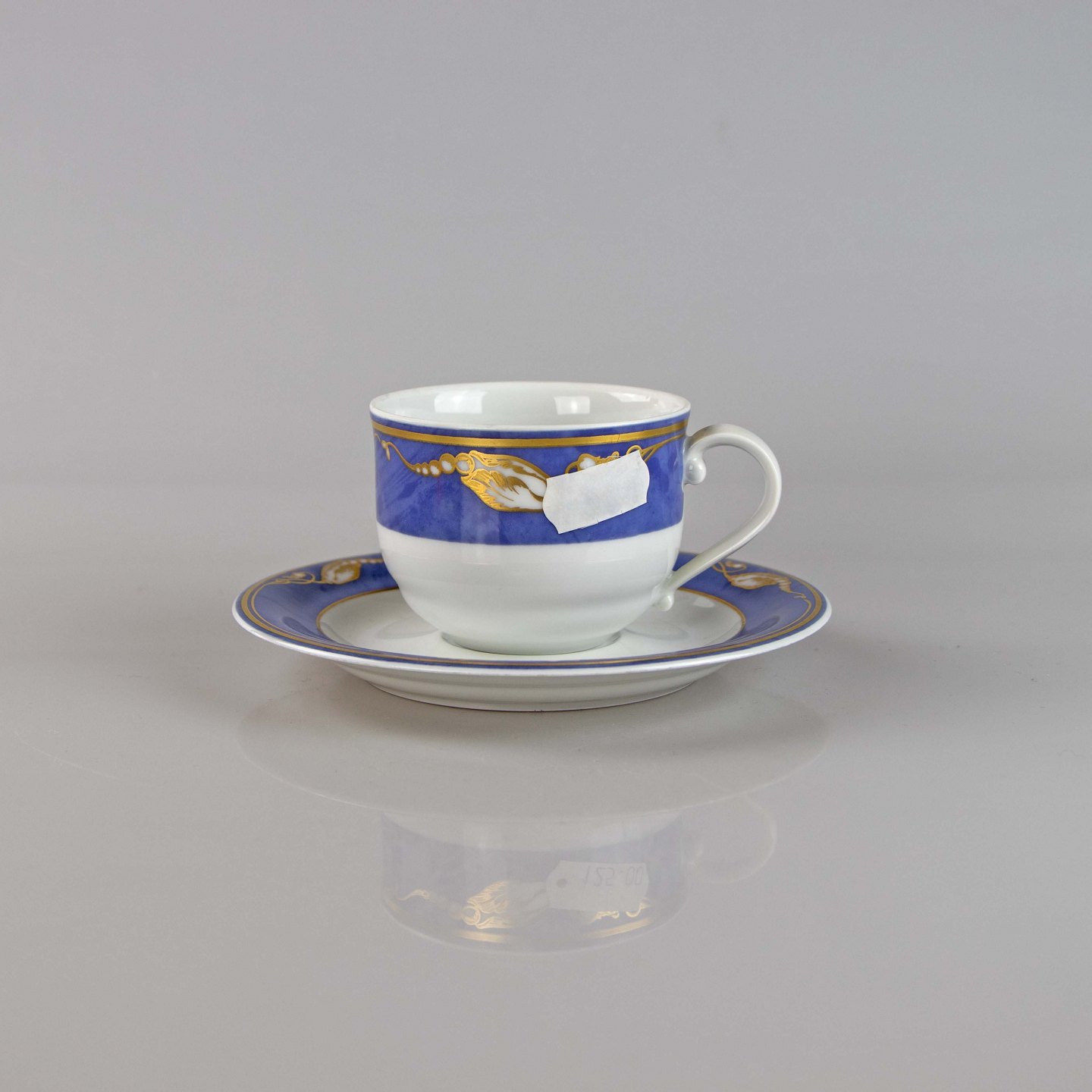 Moccakop med underkop i porcelæn fra stellet Lyseblå magnolia nr. 060 og 061