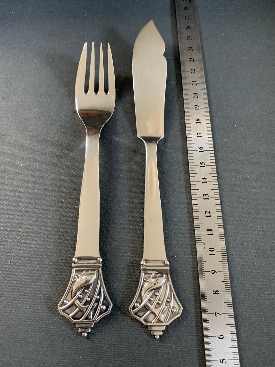 Evald Nielsen "Delfin fiskebestik i sølv.