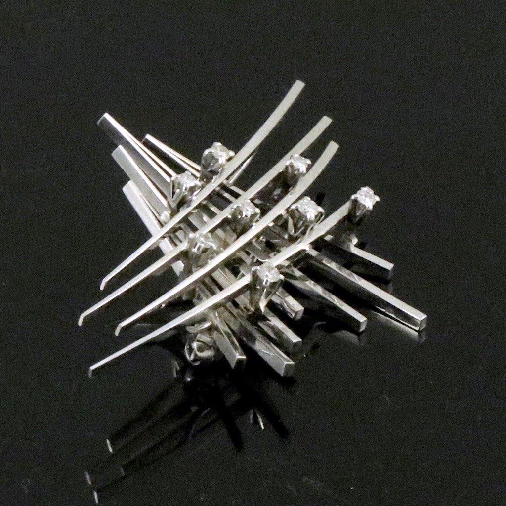 Knud V. Andersen. Broche i 18k hvidguld med diamanter 0,18ct.