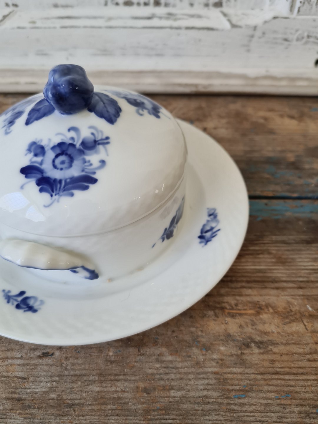 Royal Copenhagen Flettet Blå Blomst smørskål på fast underfad no. 8076