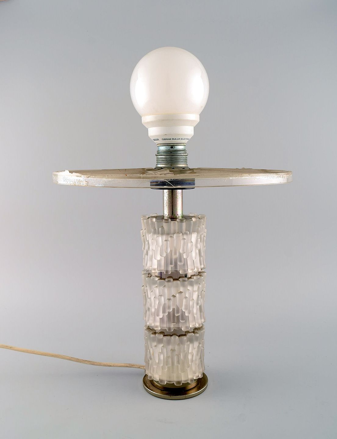 Skandinavisk designer bordlampe i stål og kunstglas. Midt 1900-tallet.
