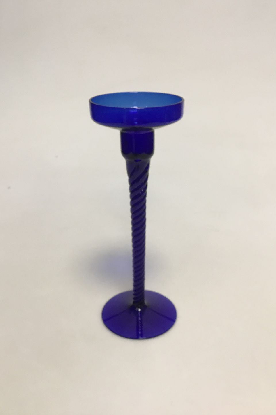 Kastrup Glasværk Amager/Twist Høj kongeblå Lysestage med snoet stilk. Måler 22 cm