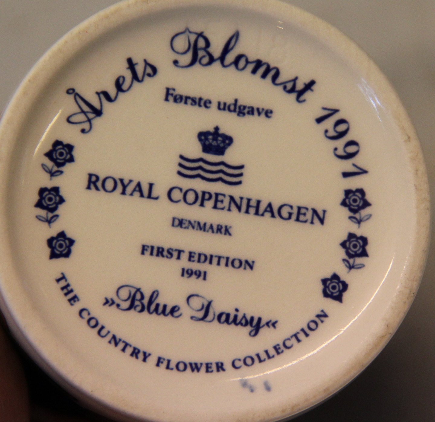 1991 Blå margueritte Krus 9 cm Årets Blomst 1. udgave Kgl. fra Royal Copenhagen