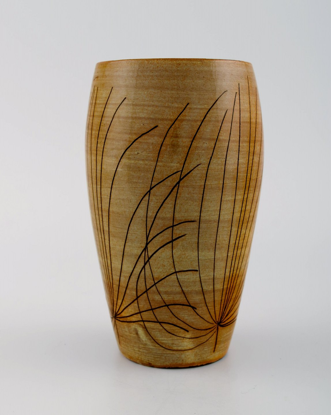 Ingrid Atterberg for Upsala Ekeby. Papyrus vase i glaseret stentøj. Midt 1900-tallet.