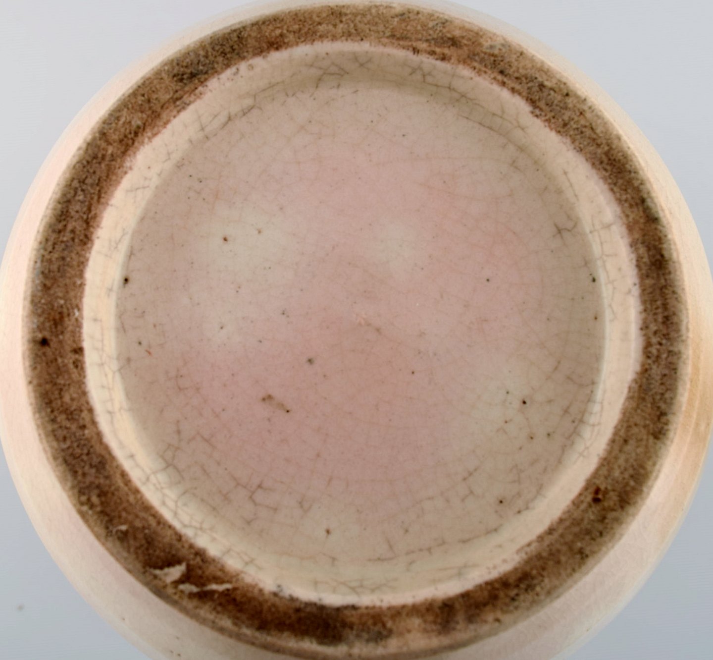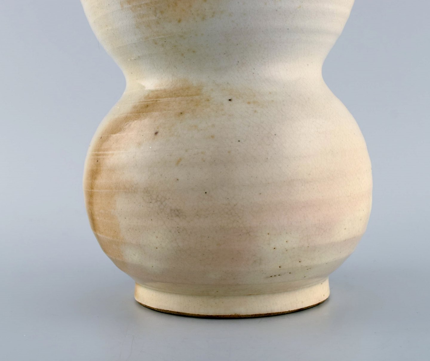 Europæisk studio keramiker. Stor unika vase i glaseret keramik. Smuk blågrøn løbeglasur på cremefarvet baggrund. 1980'erne.
