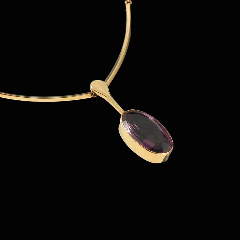 Just Andersen. Halskæde i 18k Guld med ametyst vedhæng.