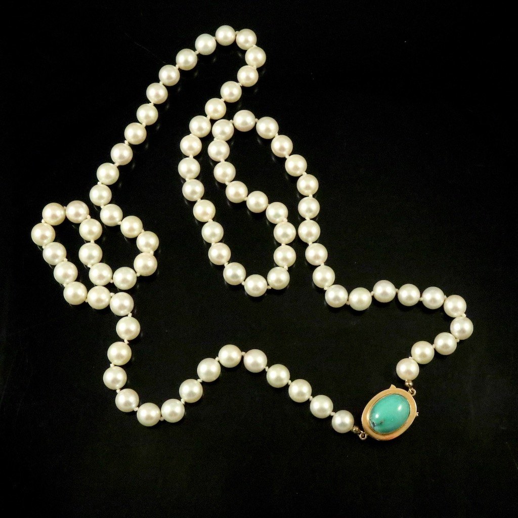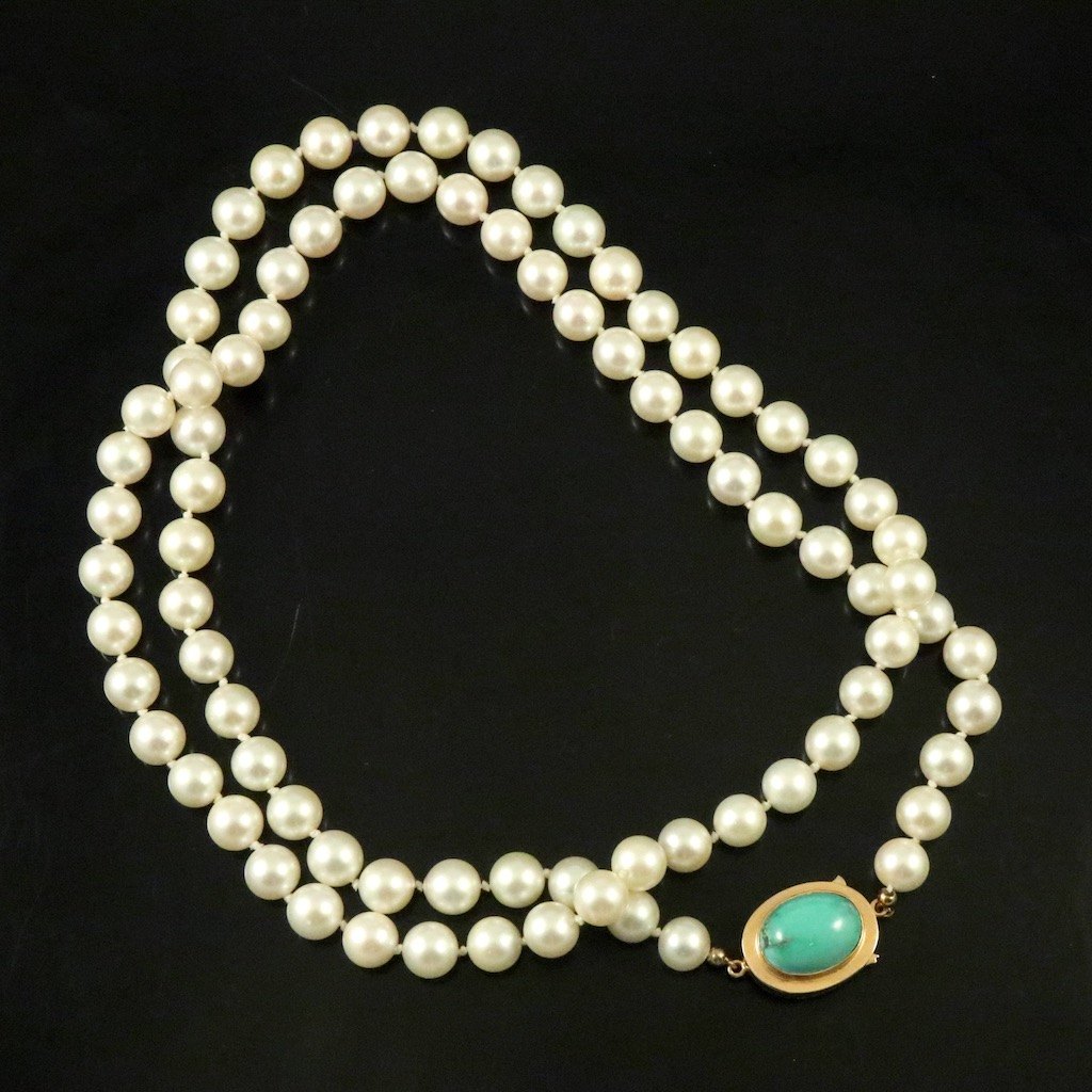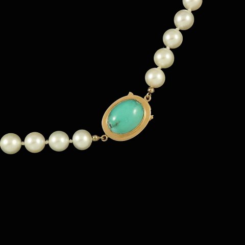 Just Andersen. Perlehalskæde med låse i 18k Guld med turkis.