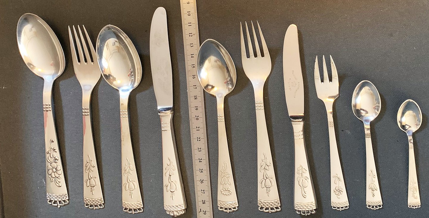 Vi et stort udvalg af serveringsdele og andre specielle dele i Kgl. Porcelæn sølvbestik.