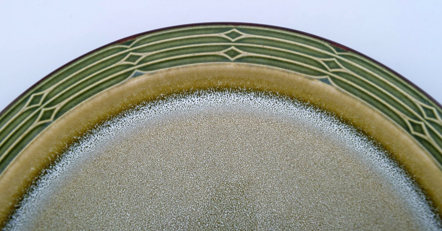 Jens H. Quistgaard (1919-2008) for Bing & Grøndahl. Stort rundt "Rune" fad i glaseret stentøj. To stk på lager.